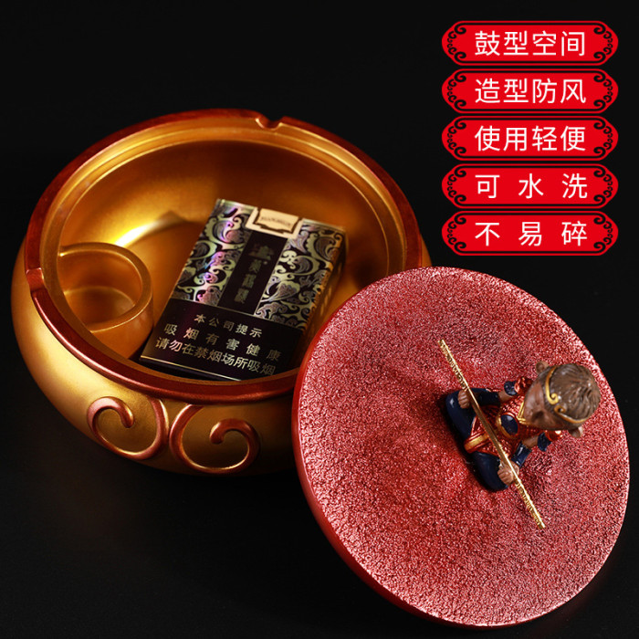 黑悟空 帶蓋菸灰缸 創意菸灰缸客廳防飛灰中式復古悟空防風菸缸
