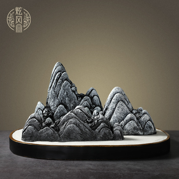 創意樹脂假山工藝品擺件 中式玄關客廳酒櫃辦公室桌面擺設