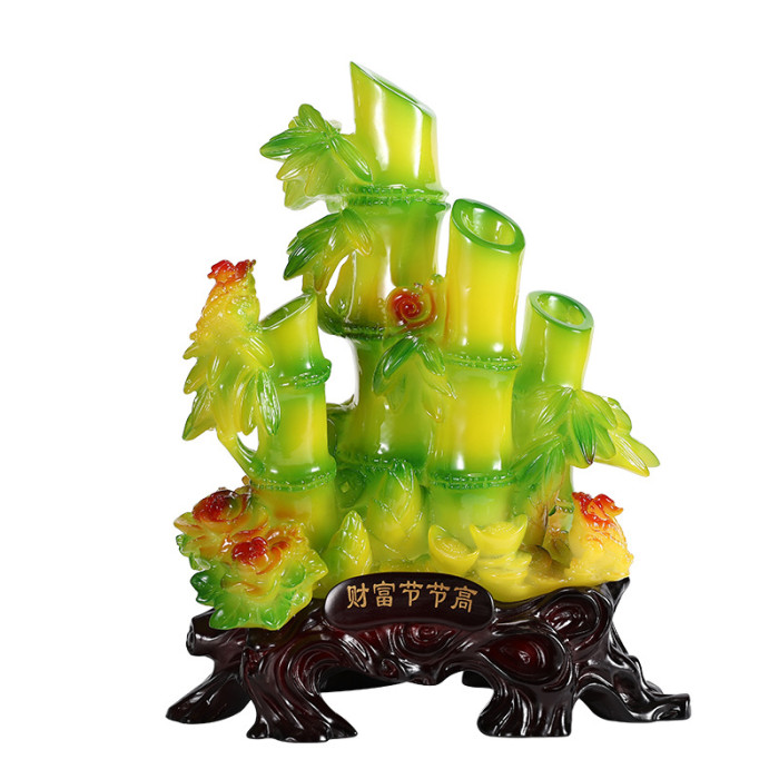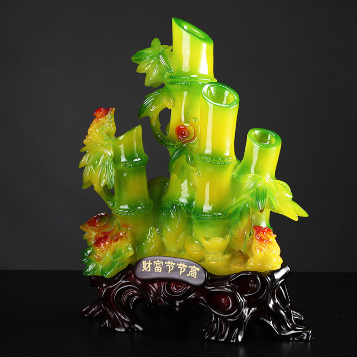 仿玉竹子財富節節高樹脂擺件中式創意富貴竹開業禮品客廳招財擺件