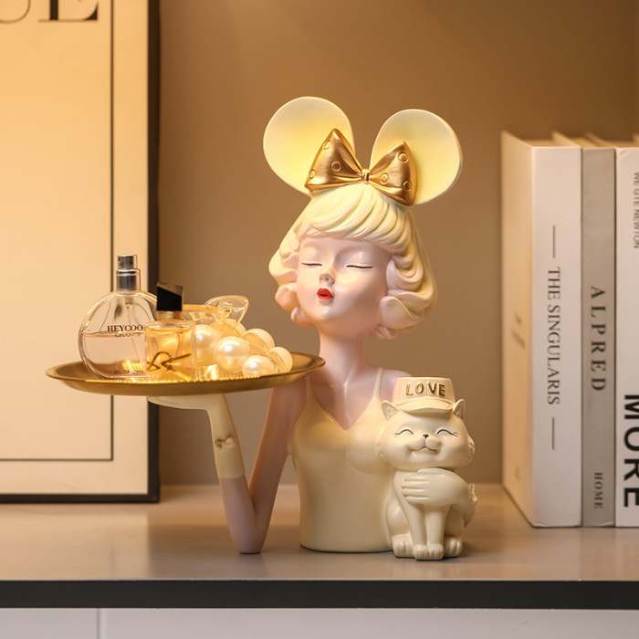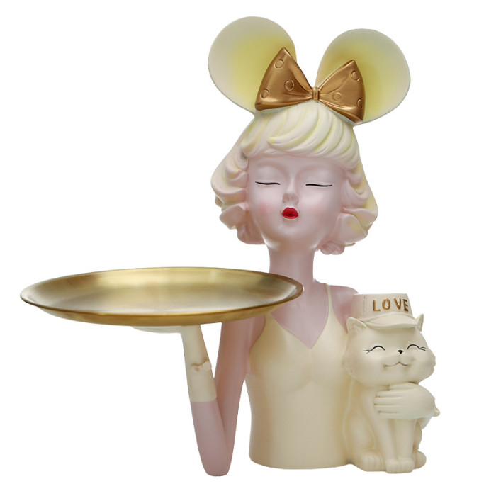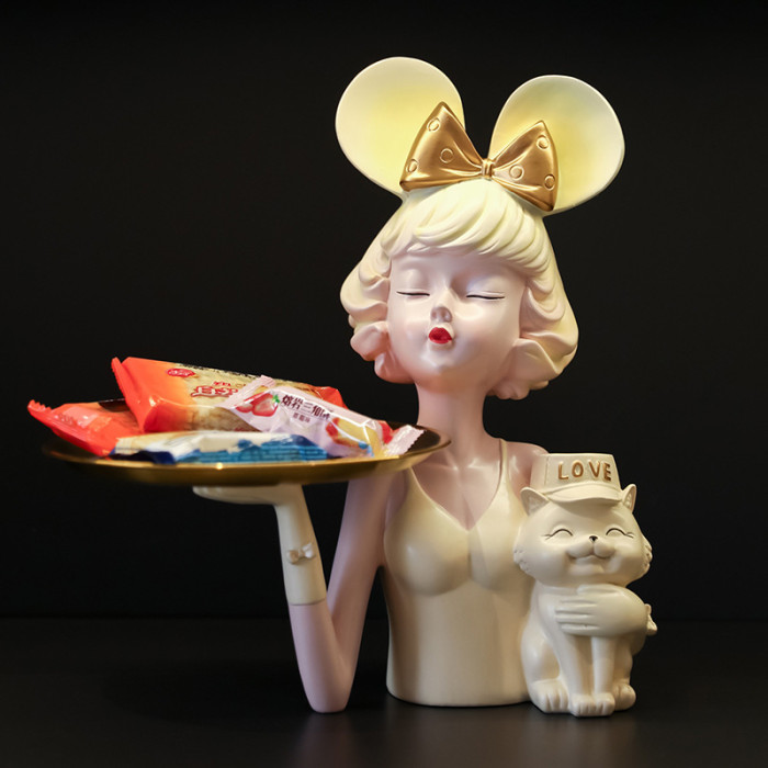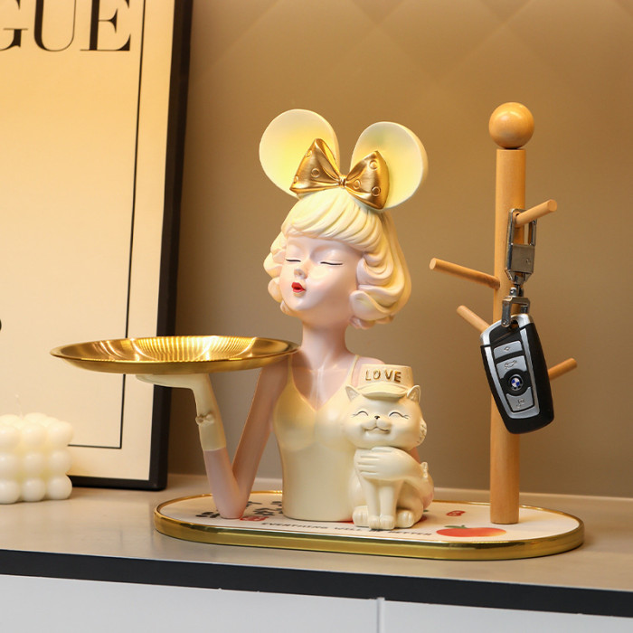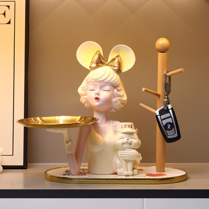 卡通女孩鑰匙收納托盤客廳酒櫃玄關裝品飾樹脂工藝品擺件