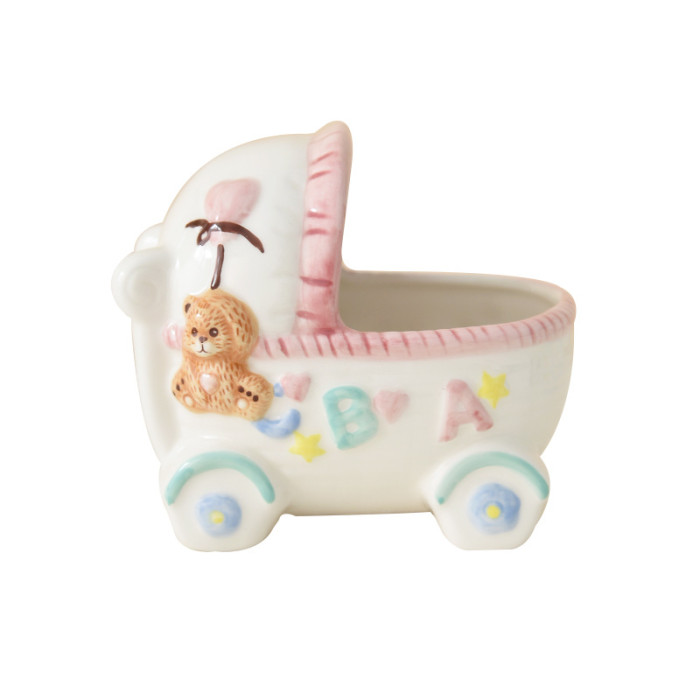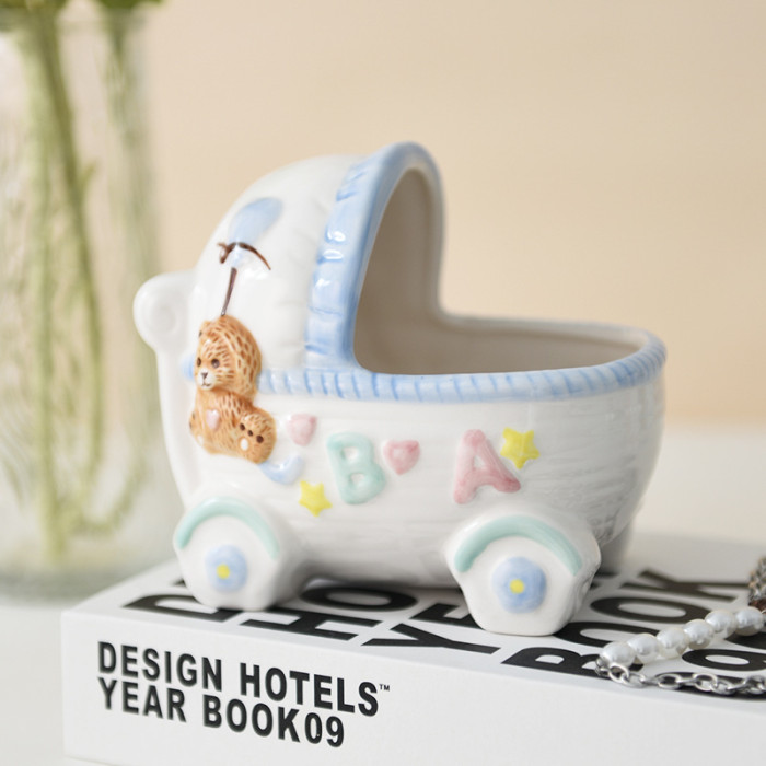 可愛熊少女心陶瓷花缸嬰兒車籃金絲熊倉鼠收納盒花籃裝飾擺件