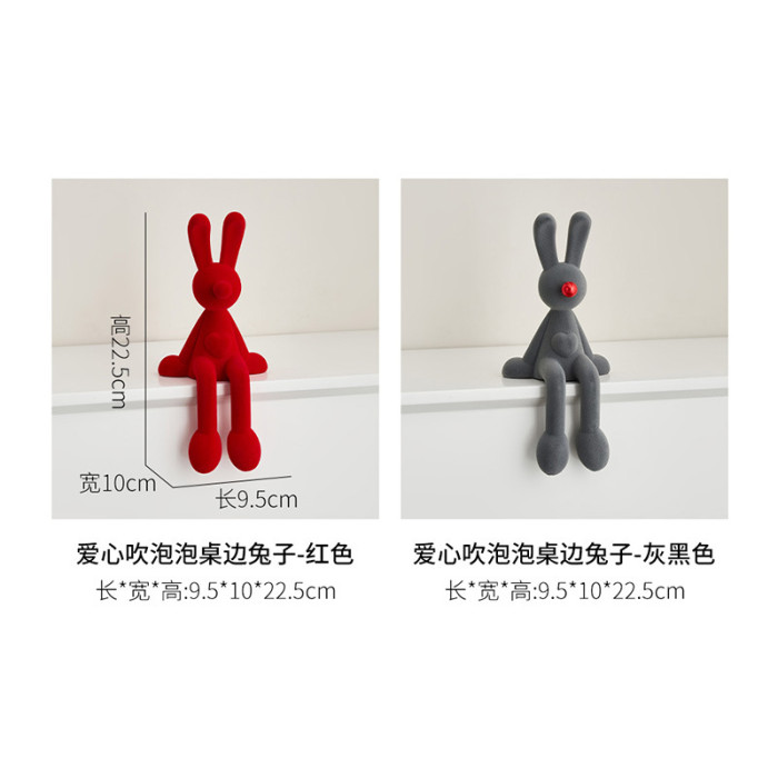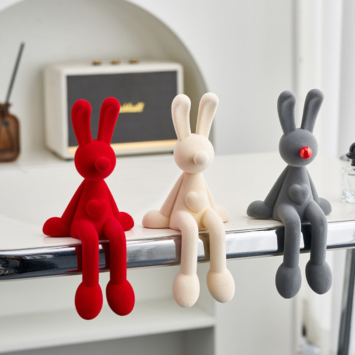 植絨坐姿兔輕奢藝術裝飾樹脂工藝品高級感酒櫃電視櫃客廳桌邊擺件