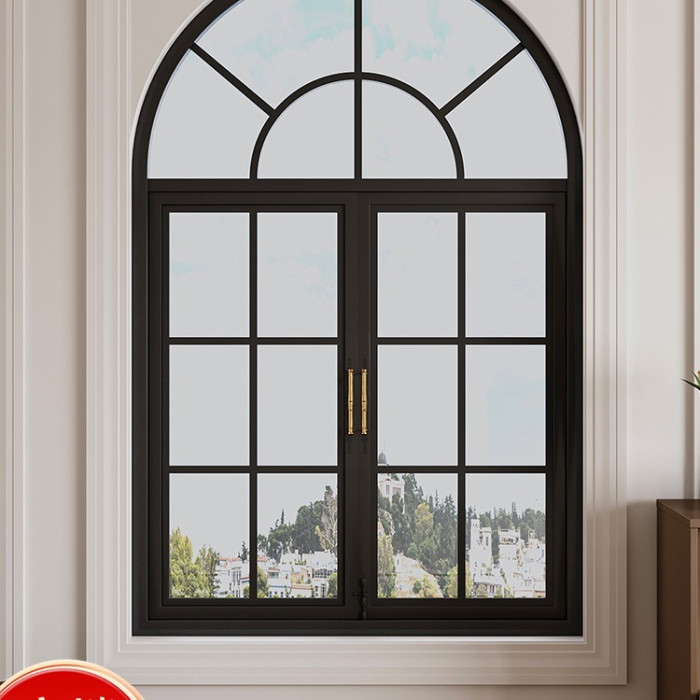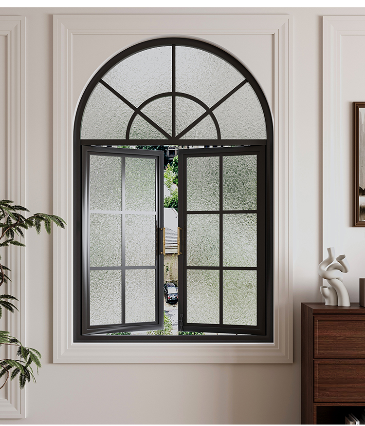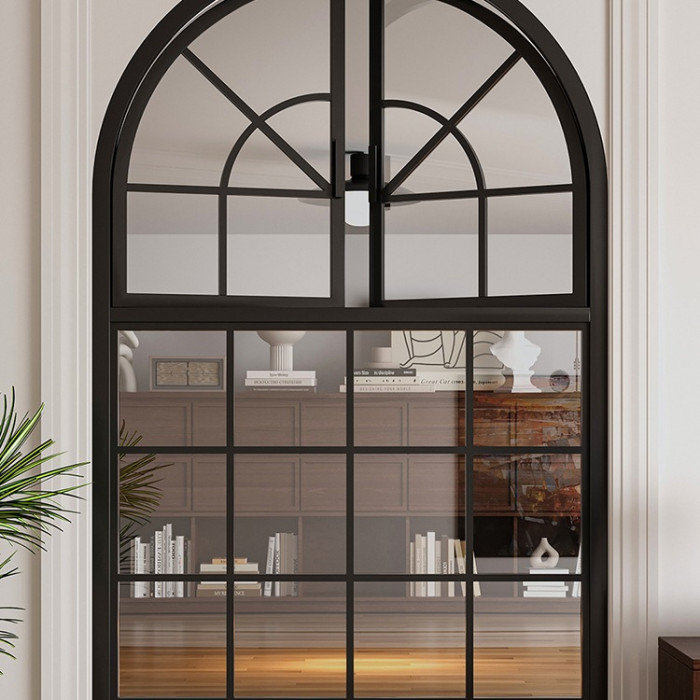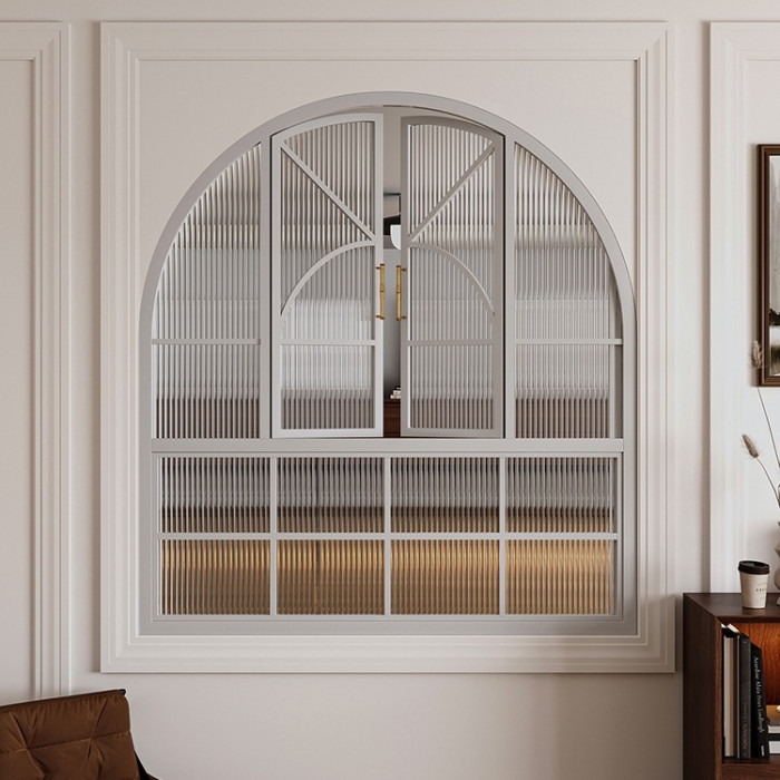 法式鐵藝拱形窗復古圓弧隔斷室內窗戶鋁合金仿古弧形裝飾玻璃窗戶