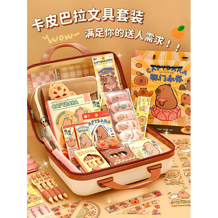 卡皮巴拉文具套裝卡通橡皮擦專用禮物ST小學生筆尖隨手圓珠筆男孩