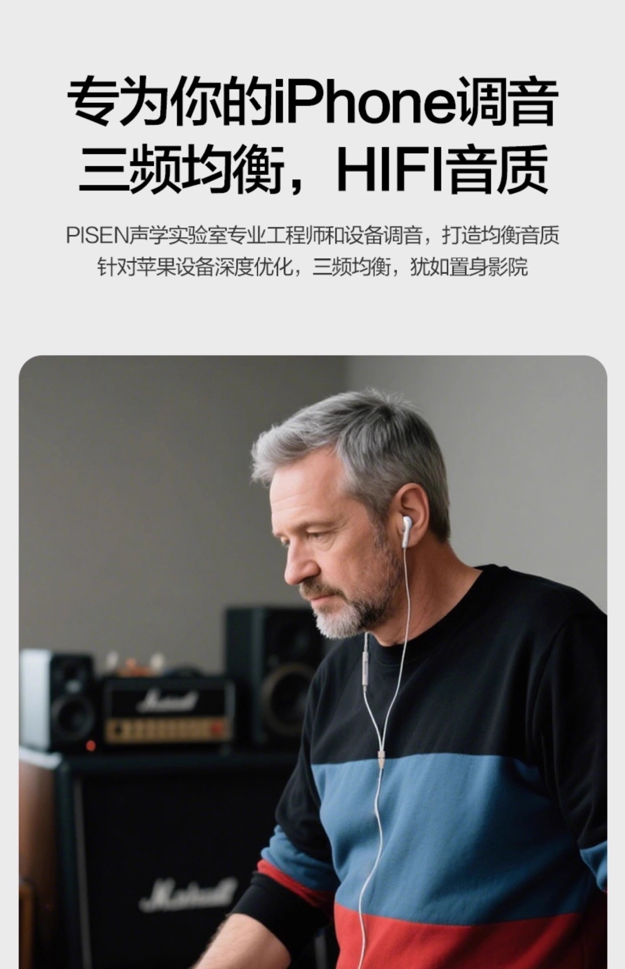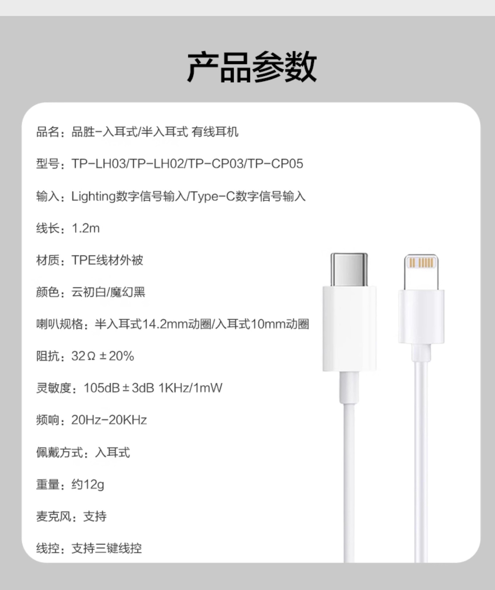 品勝耳機有線lightning接口高音質帶麥適用蘋果14華爲15小米遊戯