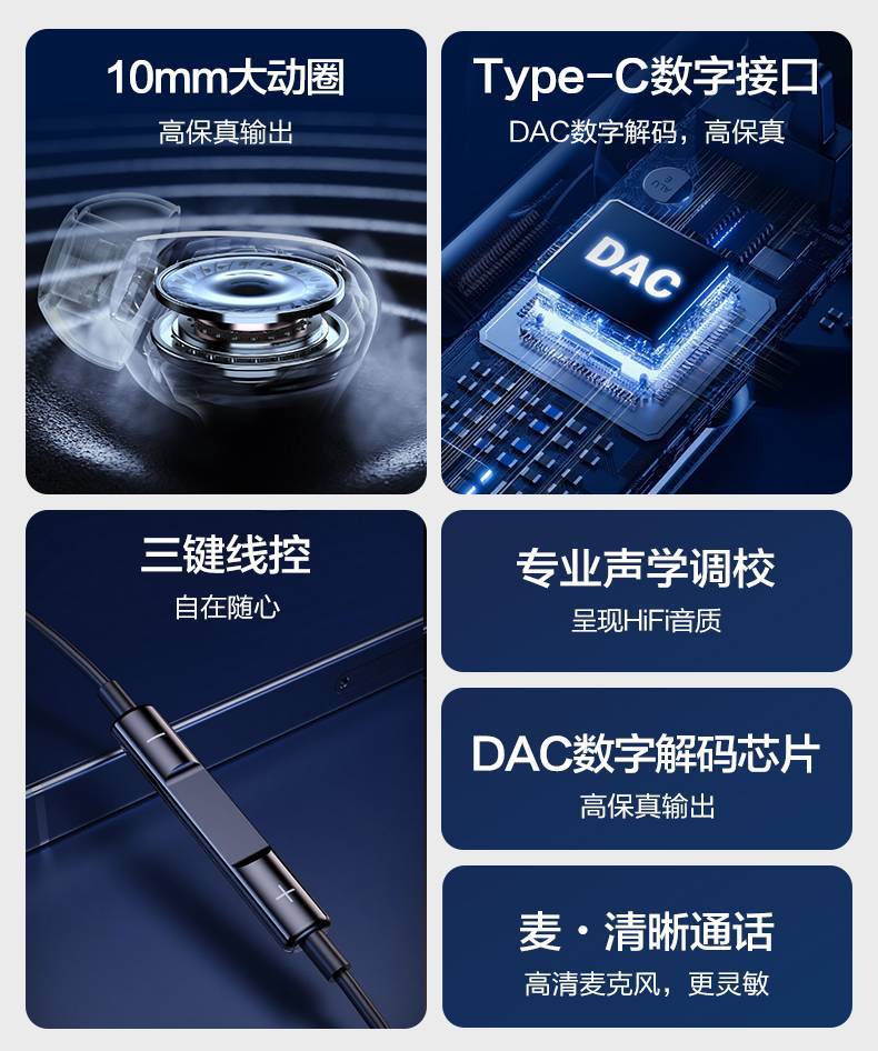 品勝耳機有線type-c接口高音質帶麥適用蘋果16華爲15小米遊戯電腦