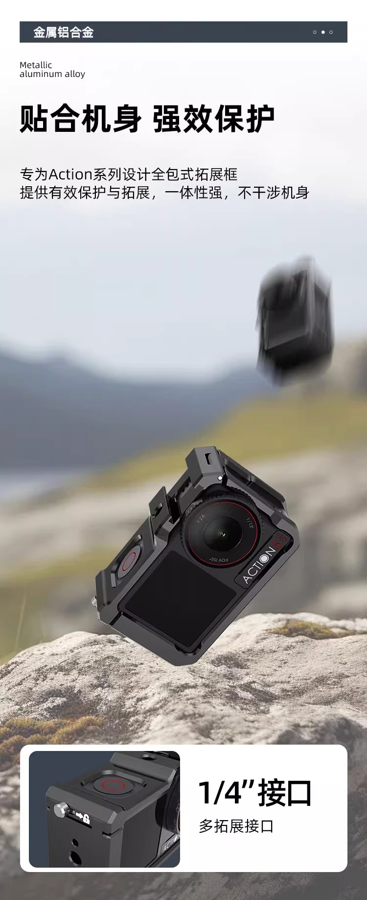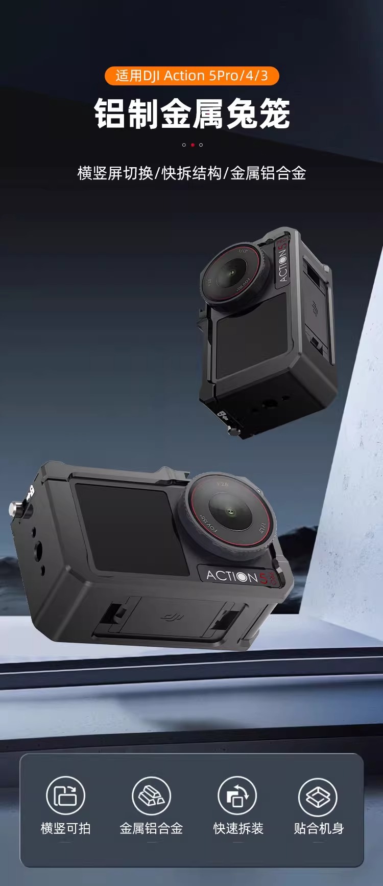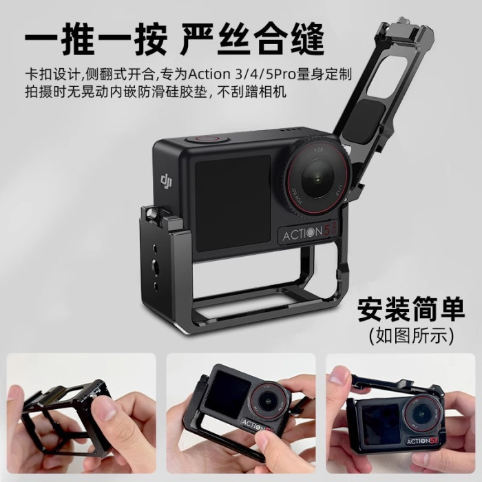 適用大疆action3/4/5超輕兔籠金屬邊框兔籠拍攝折曡拓展防摔