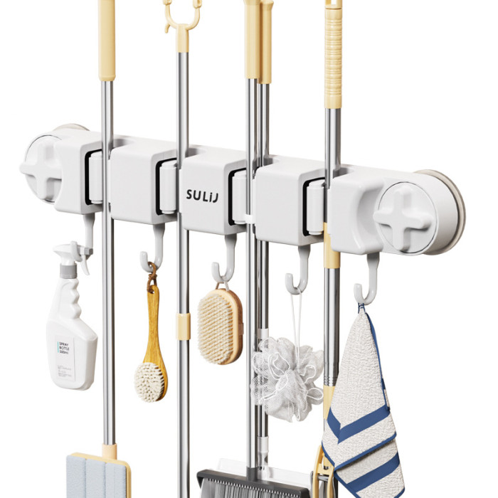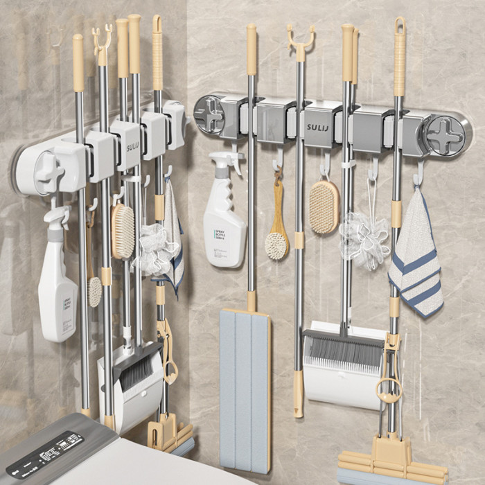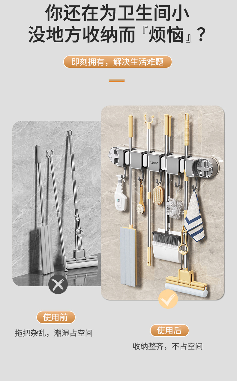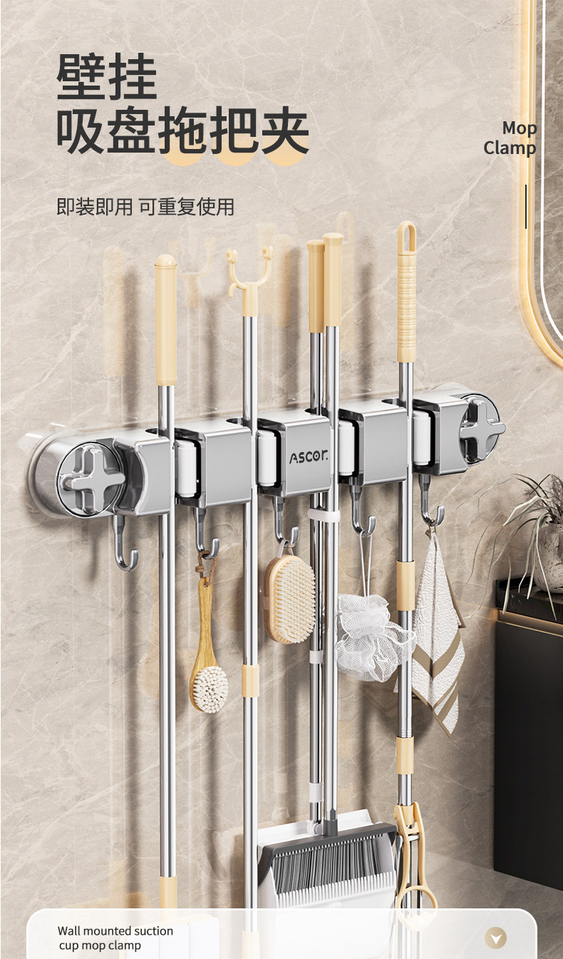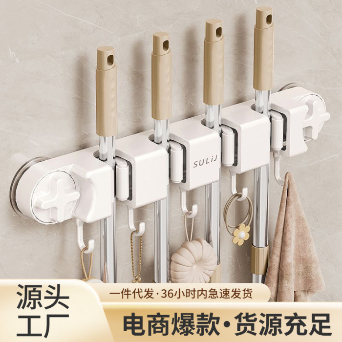 吸盤拖把夾衛生間免打孔收納掛架卡扣掃把拖布掛鉤壁掛牆上置物架