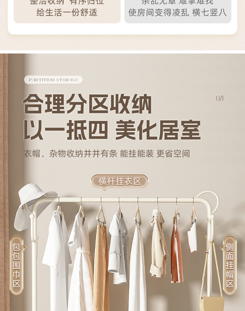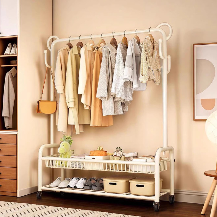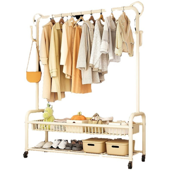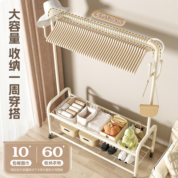 仙人掌鉤60cm【雙層置物】收納衣架 嬭油白