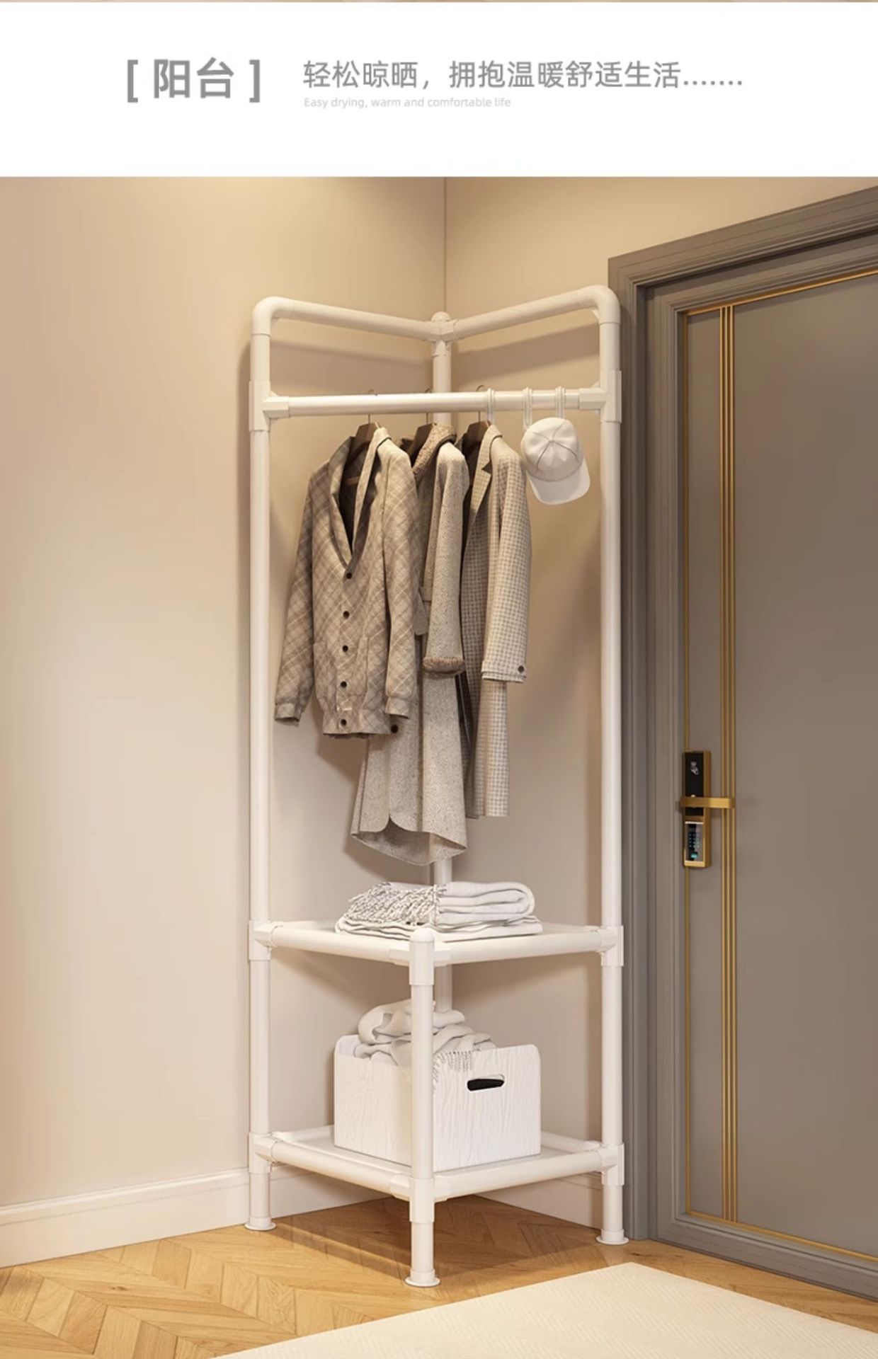 【靚麗白】176cm轉角衣帽架三層置物