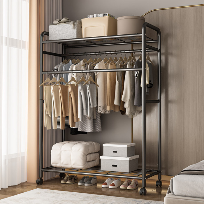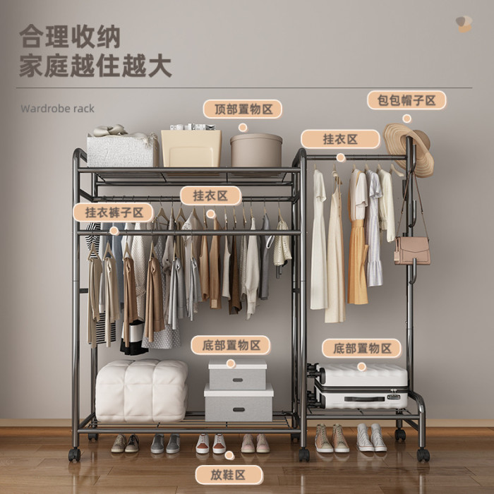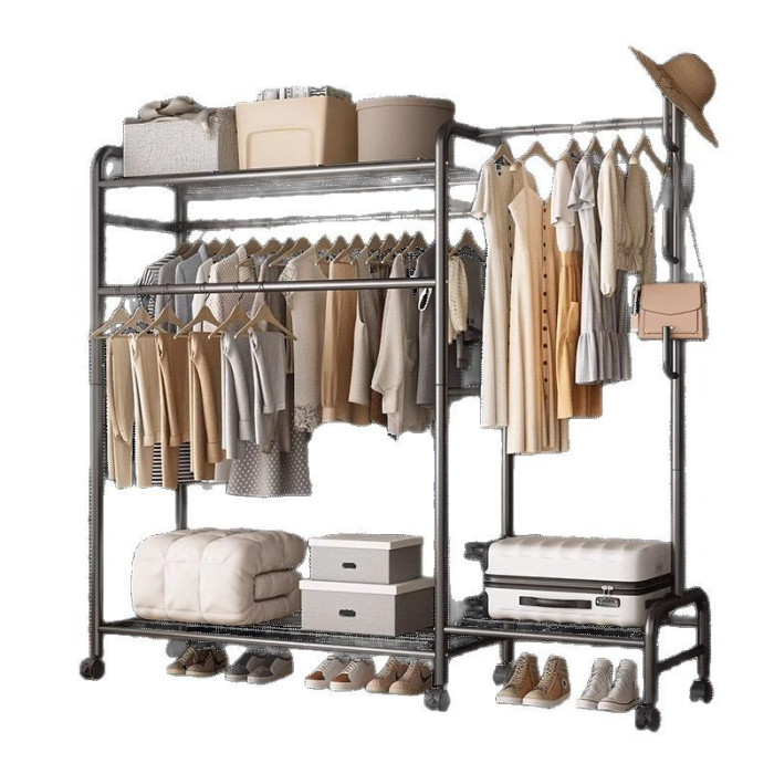 掛衣架落地臥室家用可移動雙桿置物衣帽架簡易收納架立式晾衣架子