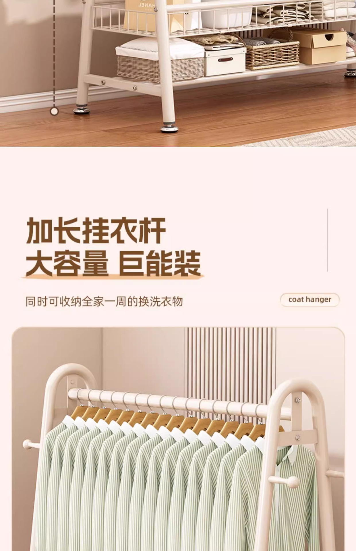 嬭油白-長120*高170丨升級雙層置物網籃【加粗22琯】