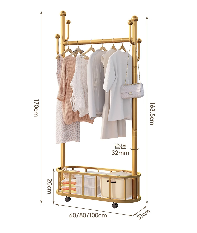 特粗32琯逕+4掛鉤+帶鎖萬向輪【輕奢金-100cm】
