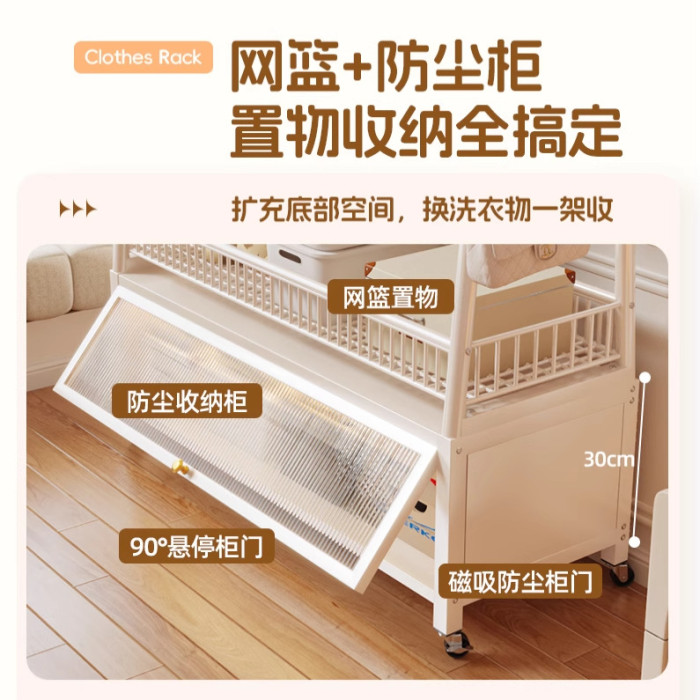120CM-嬭白【收納網籃+防塵儲物櫃】帶掛鉤+輪子