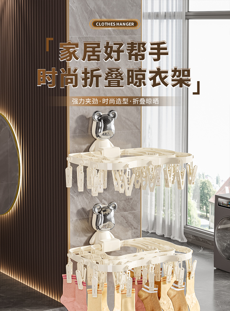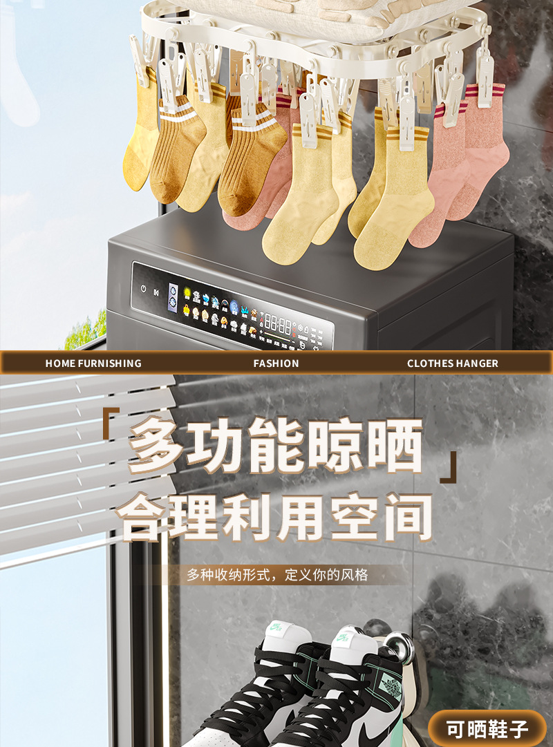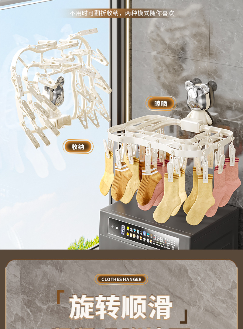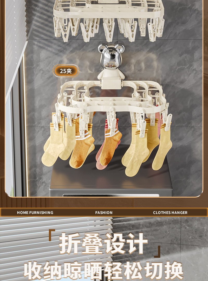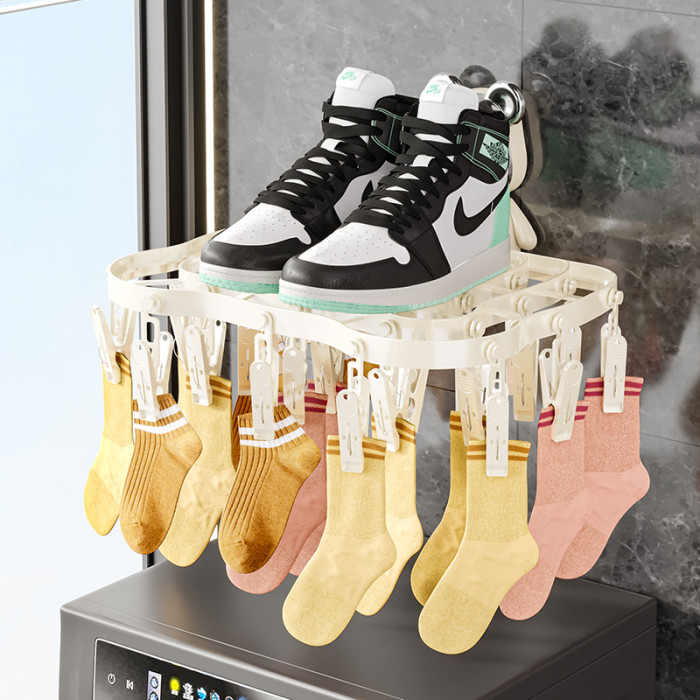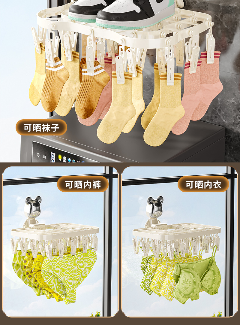 襪子晾曬架家用陽台收納神器多功能內衣內褲防風可折曡多夾晾衣架