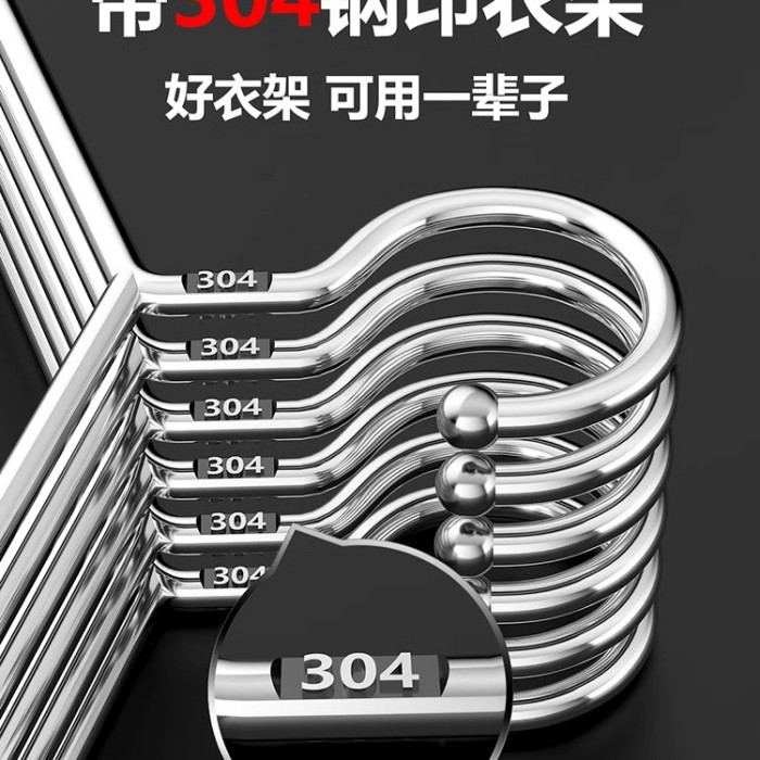 304不鏽鋼衣架實心掛衣架子涼晾衣撐撐子曬衣掛衣服加粗陽台防滑