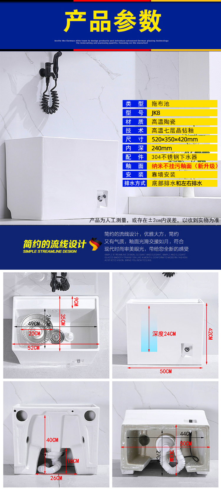 拖把池2025新款大號陶瓷家用陽台衛生間雙驅動旋轉洗墩布地盆