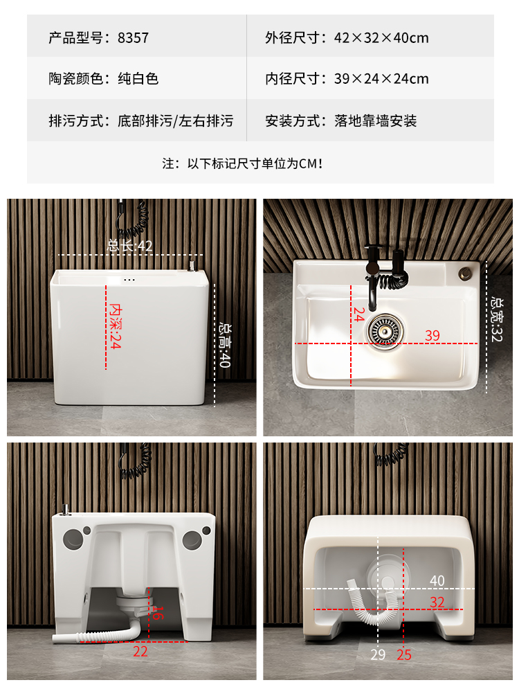 陽台洗拖把池陶瓷家用陽台衛生間大號落地式拖布池墩布池小號地盆