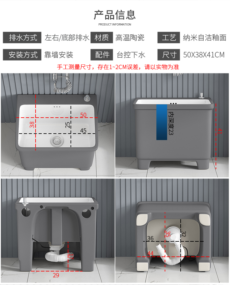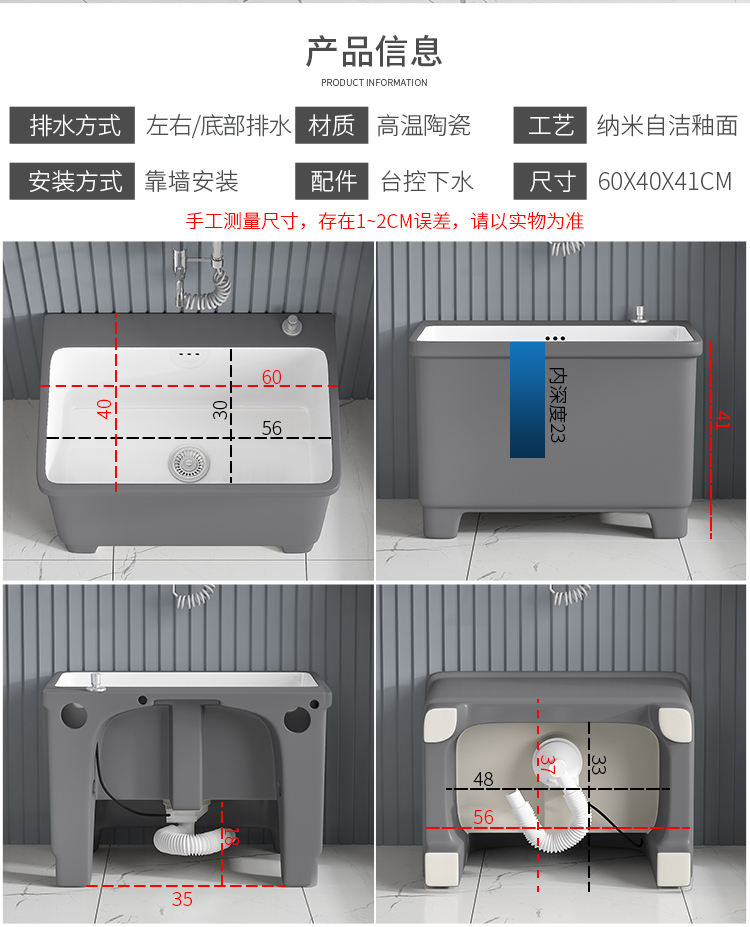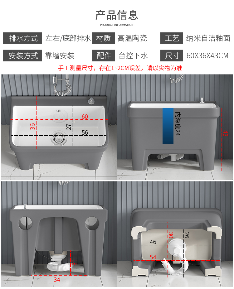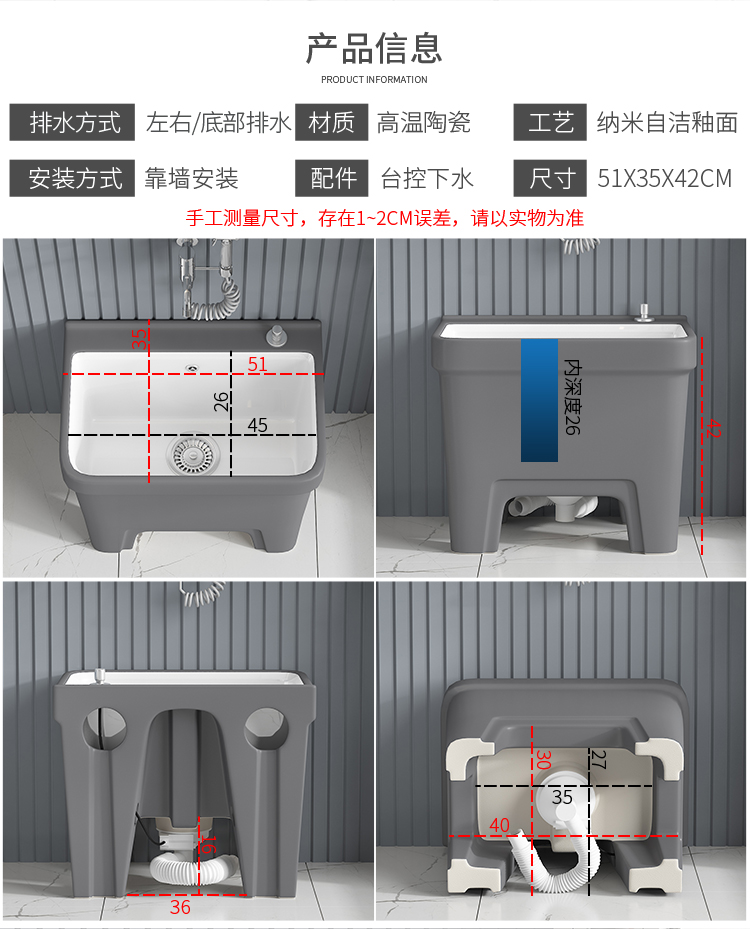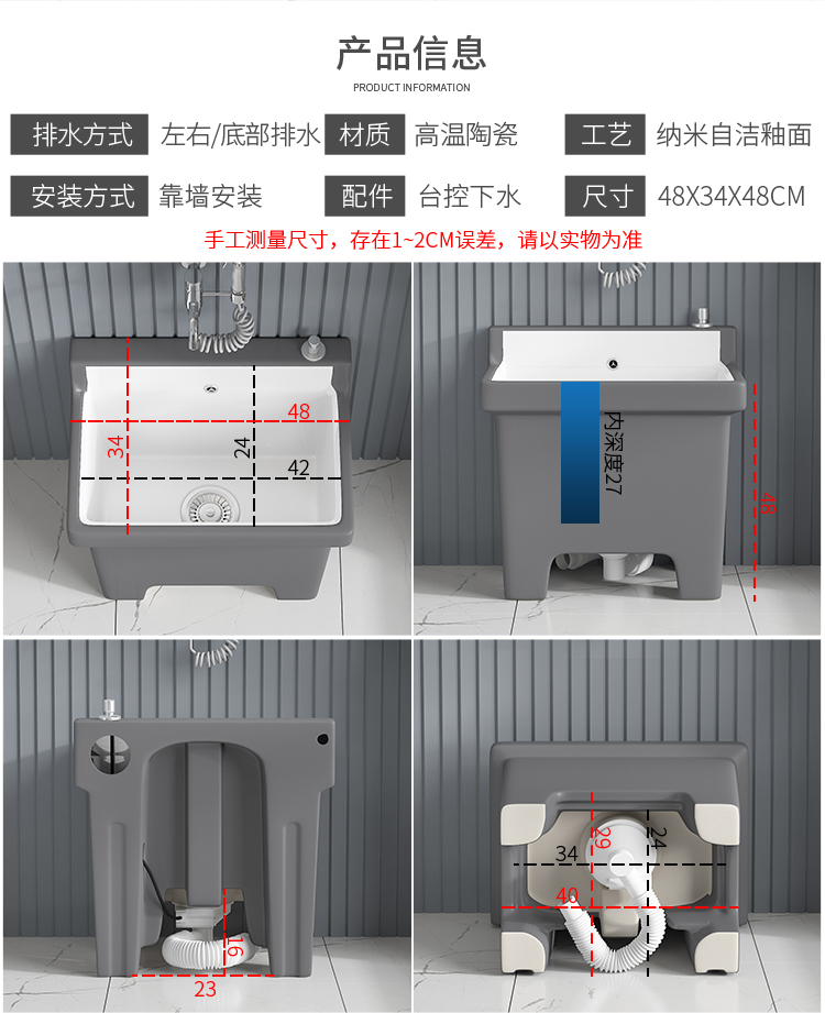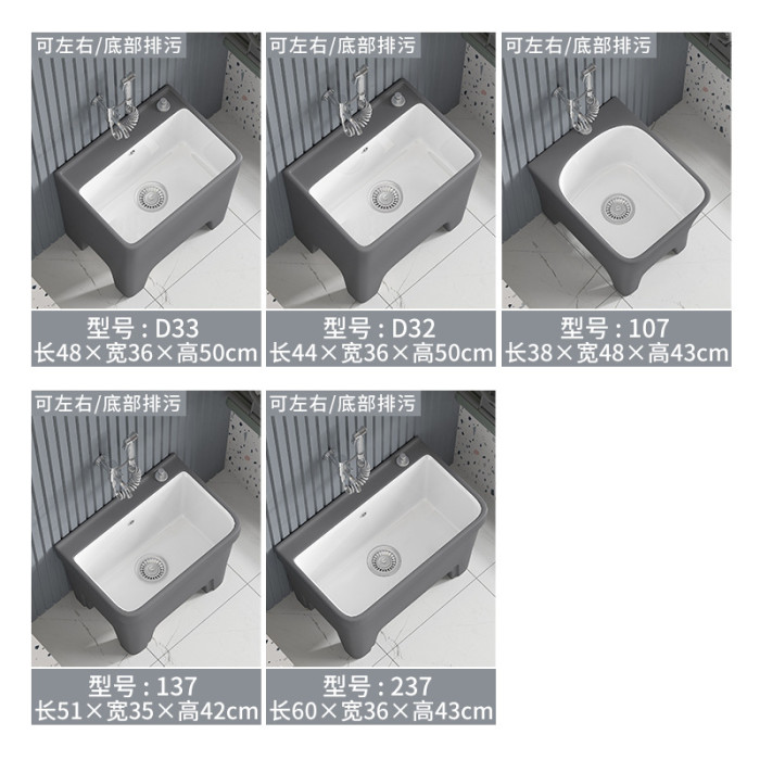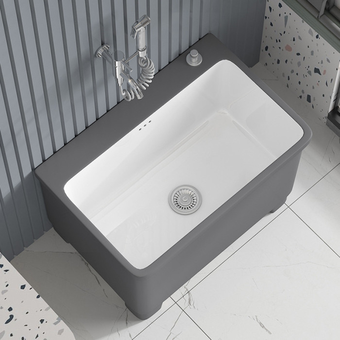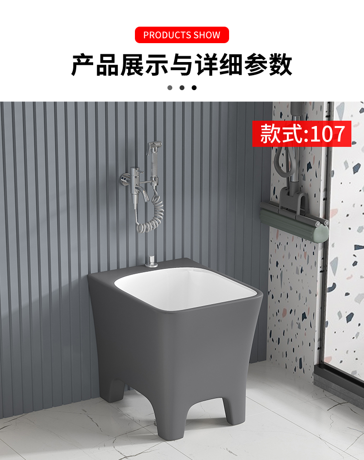 北歐灰色高腳拖把池陶瓷家用陽台衛生間拖布池四角墩布池洗拖布盆