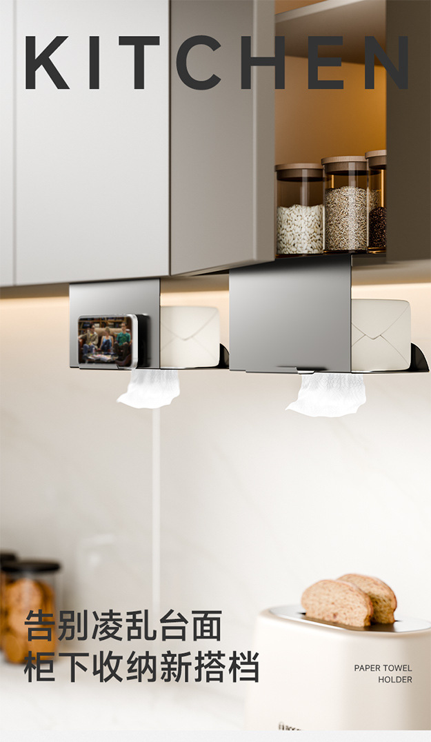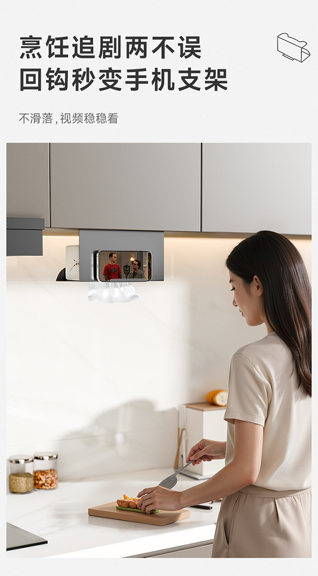 廚房專用懸掛式紙巾盒多功能收納盒手機支架紙巾掛架衛生間置物架