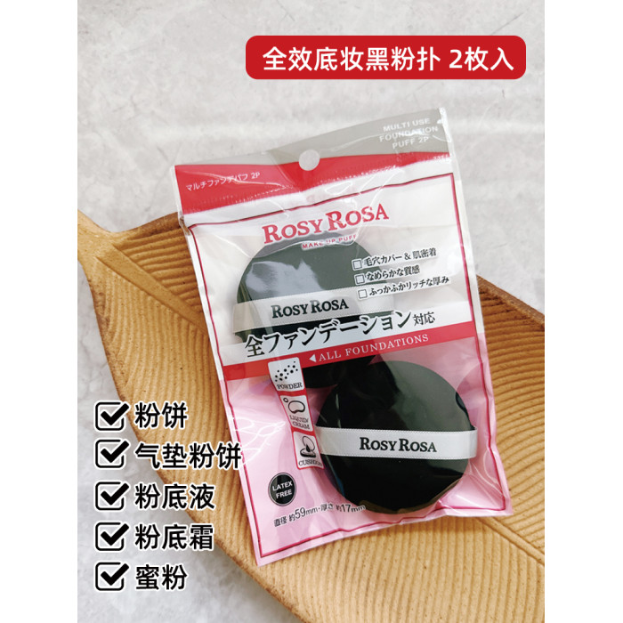 日本ROSYROSA乾溼兩用黑色粉撲底妝定妝化妝棉全面遮蓋高密度粉撲