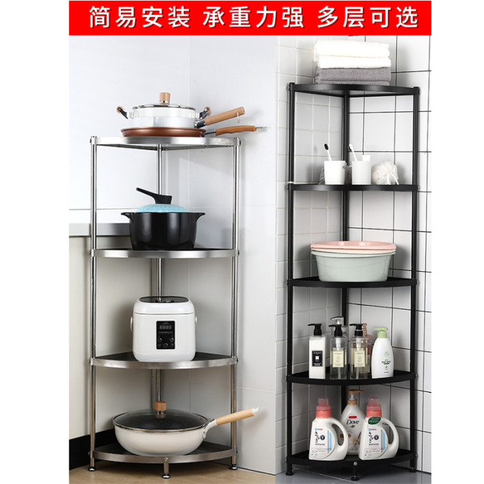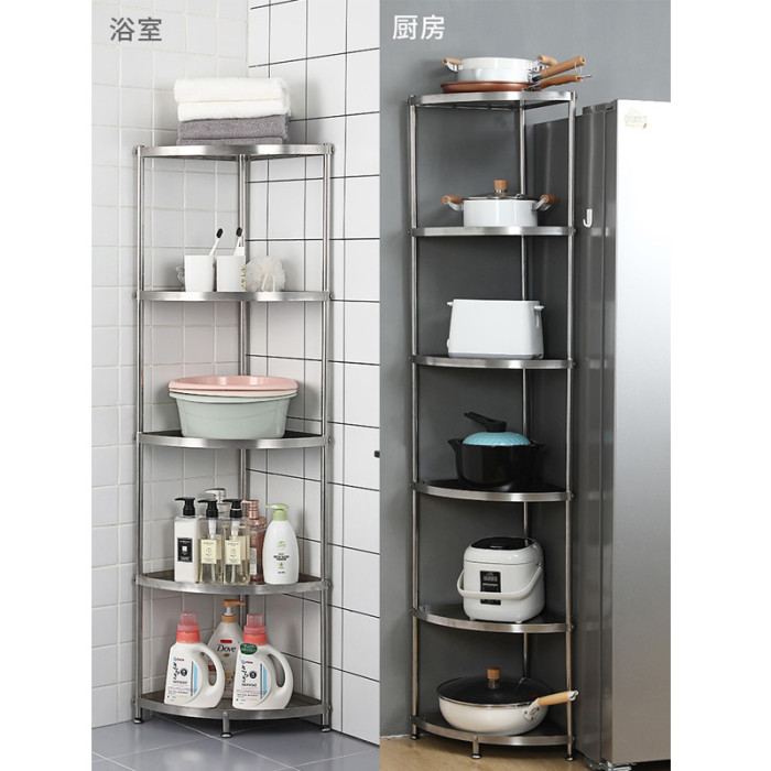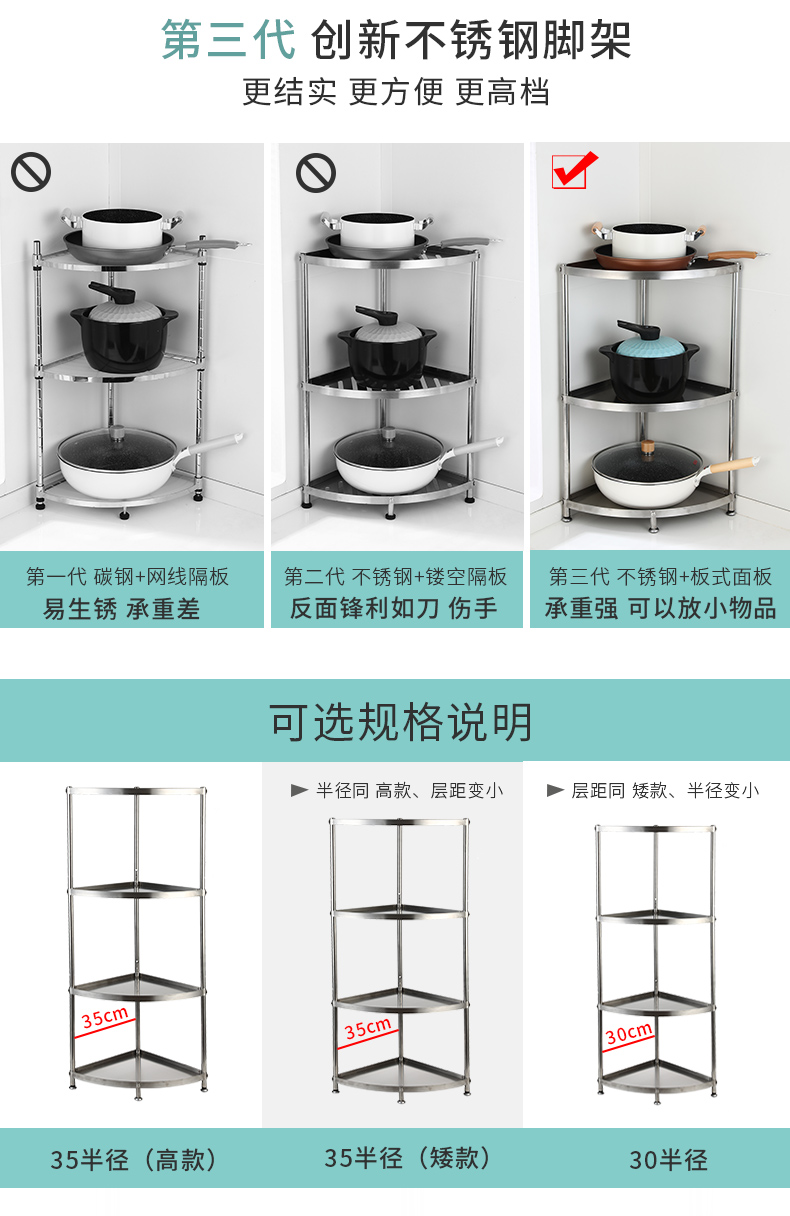304不鏽鋼廚房三角置物架轉角架放鍋架子30收納落地式多層柺角架