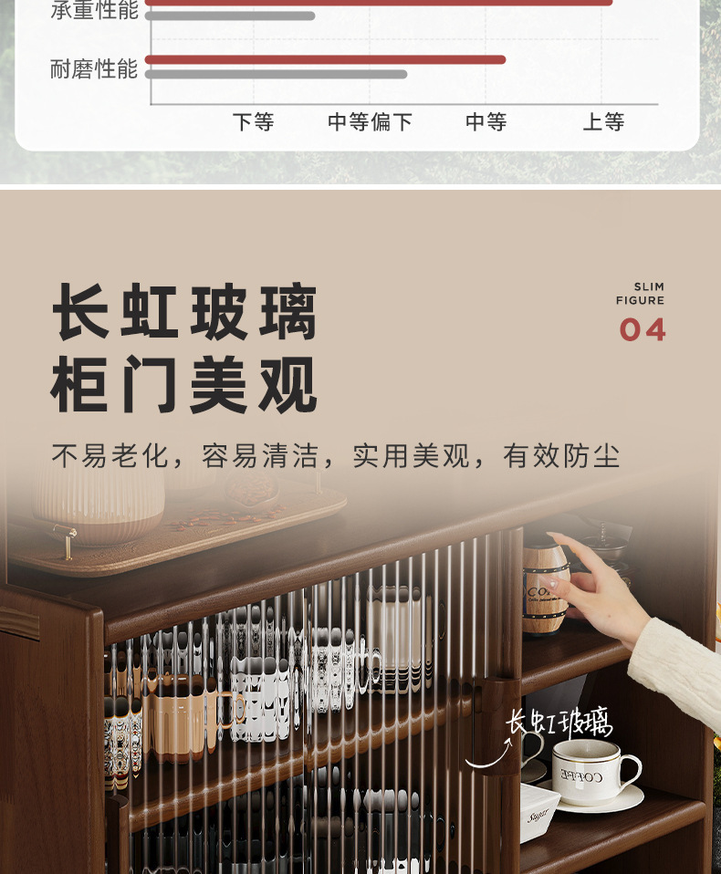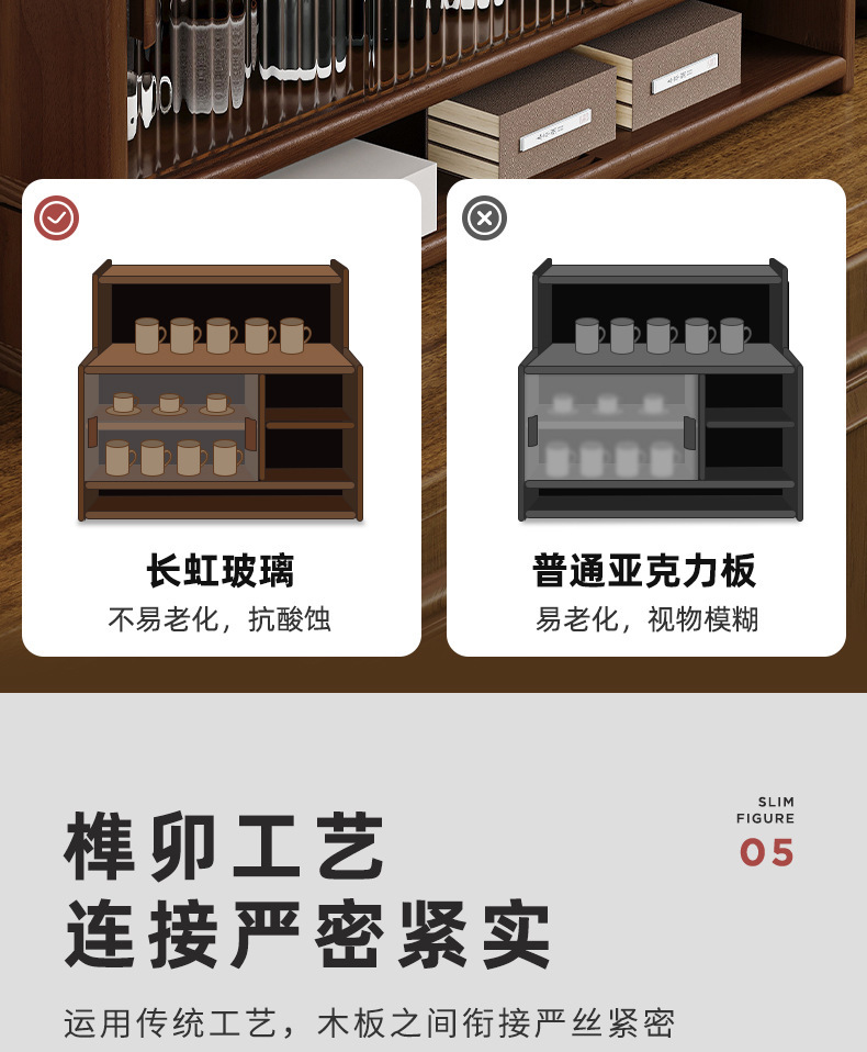 【松木+櫻桃木色清漆】三層帶底格-長虹鋼化玻璃櫃門*圓潤邊角
