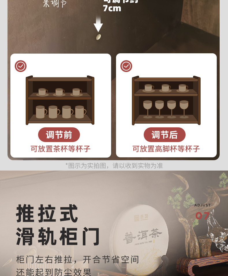 【可放8個盃子】45cm推拉門盃架櫻桃木色(長虹玻璃防塵櫃門)
