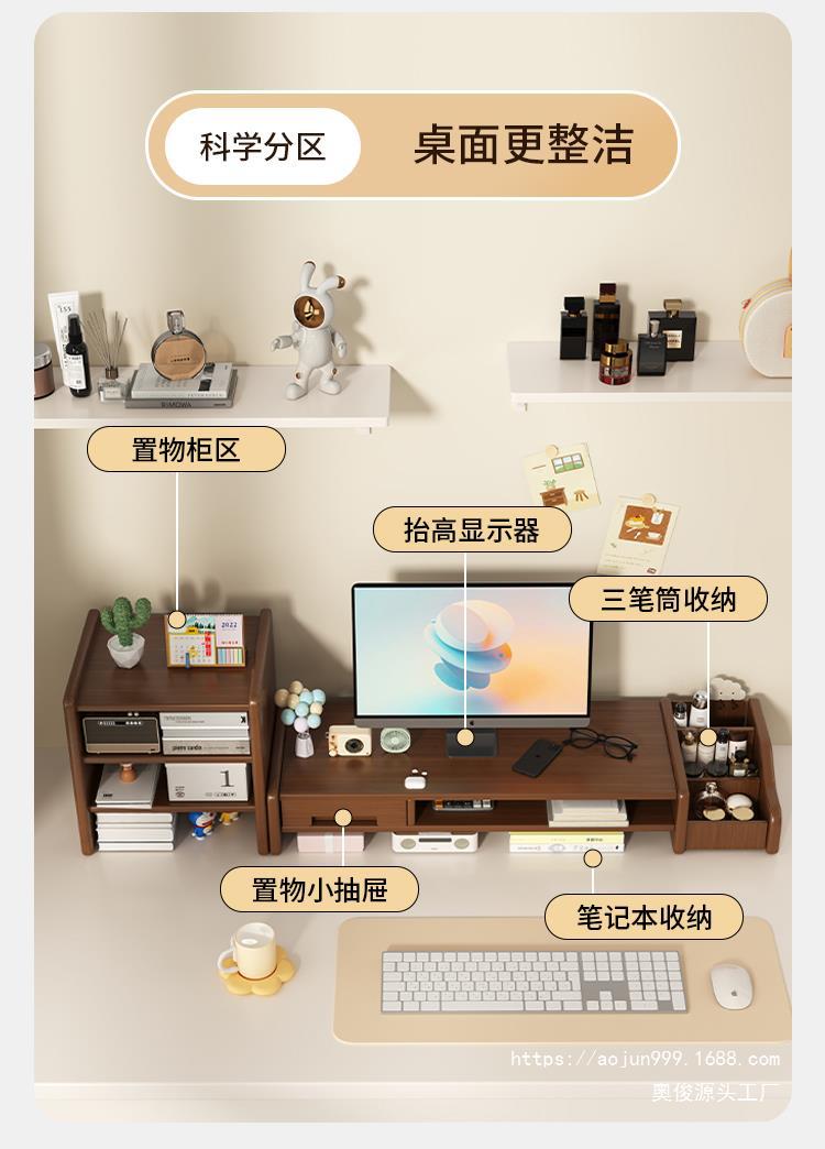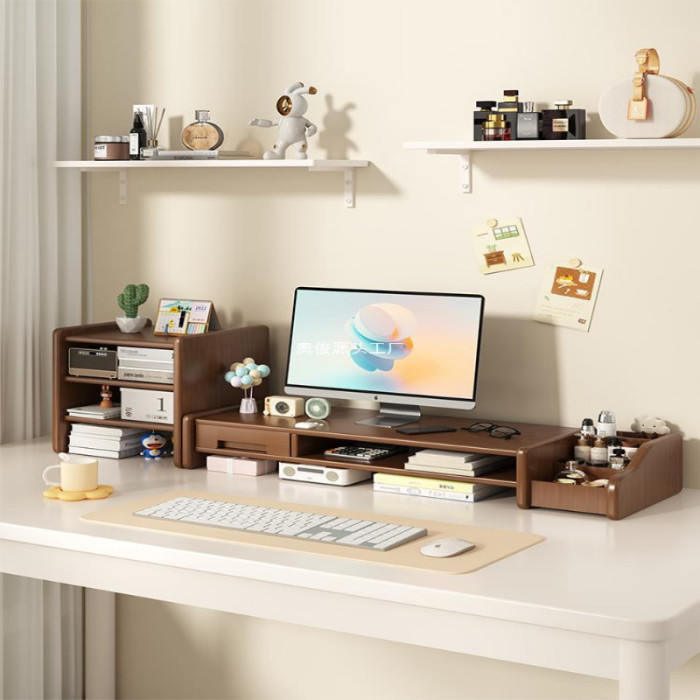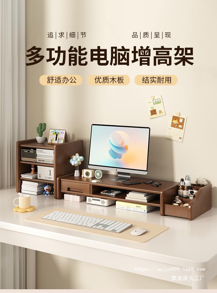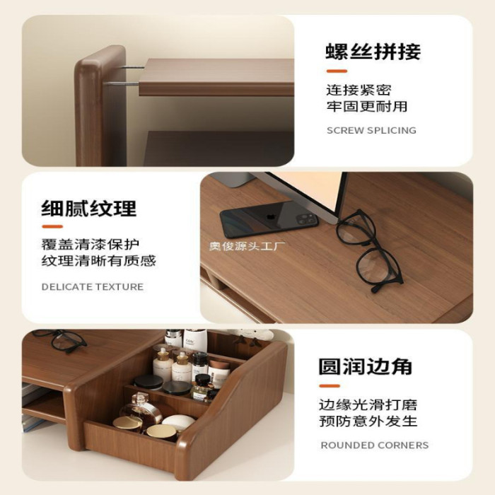 桌上型工位電腦增高架家用辦公桌面收納置物架帶抽屜顯示器墊高托架