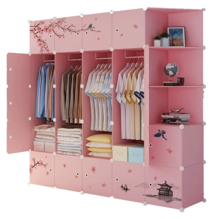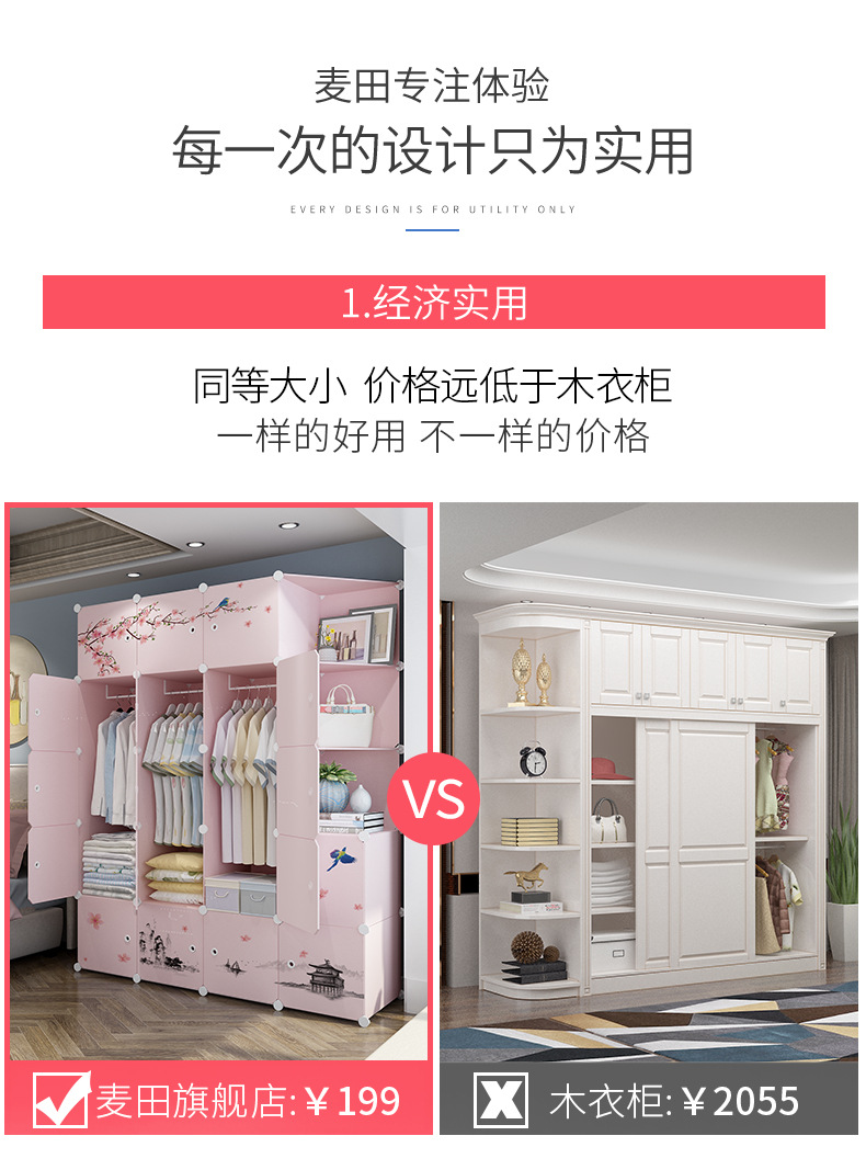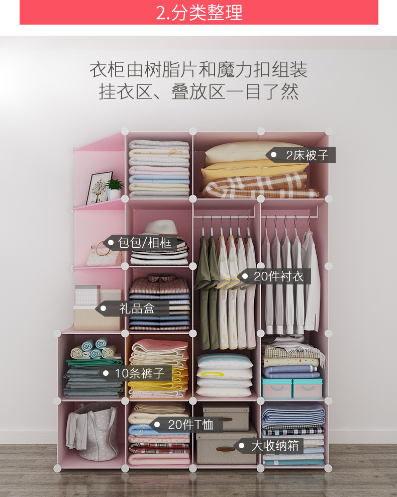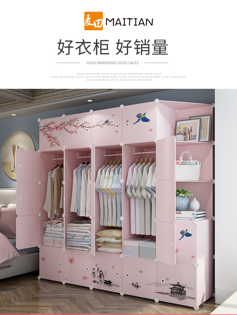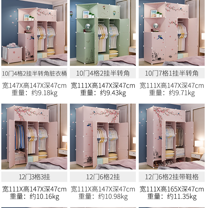 簡易衣櫃組裝家用臥室塑膠櫃子掛收納現代簡約出租房儲物櫃布衣櫥