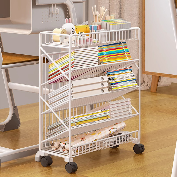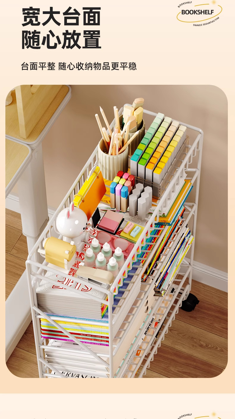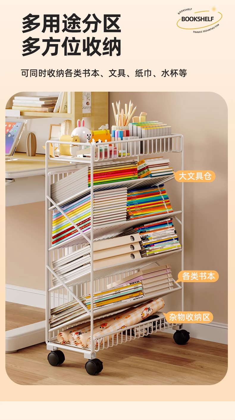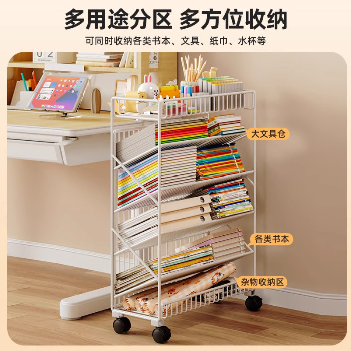 可移動桌邊收納架小書架教室旁學生書本落地置物架書立架書桌課桌