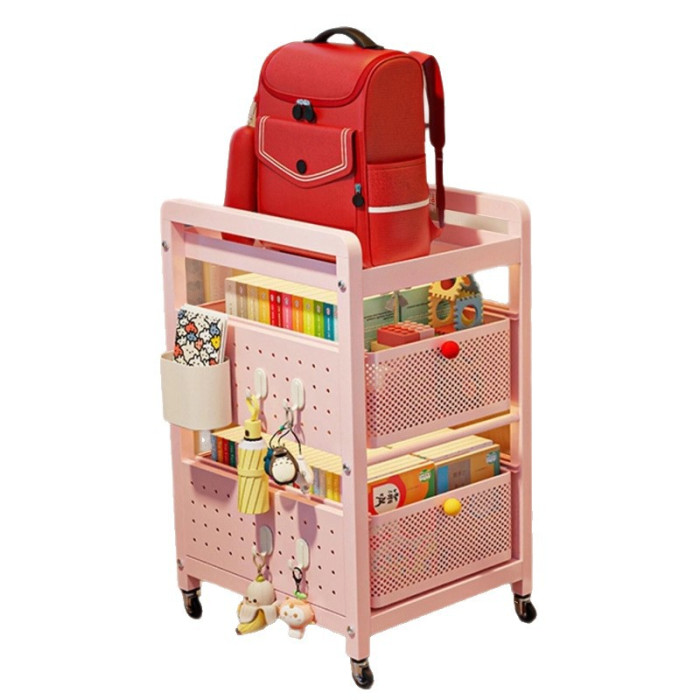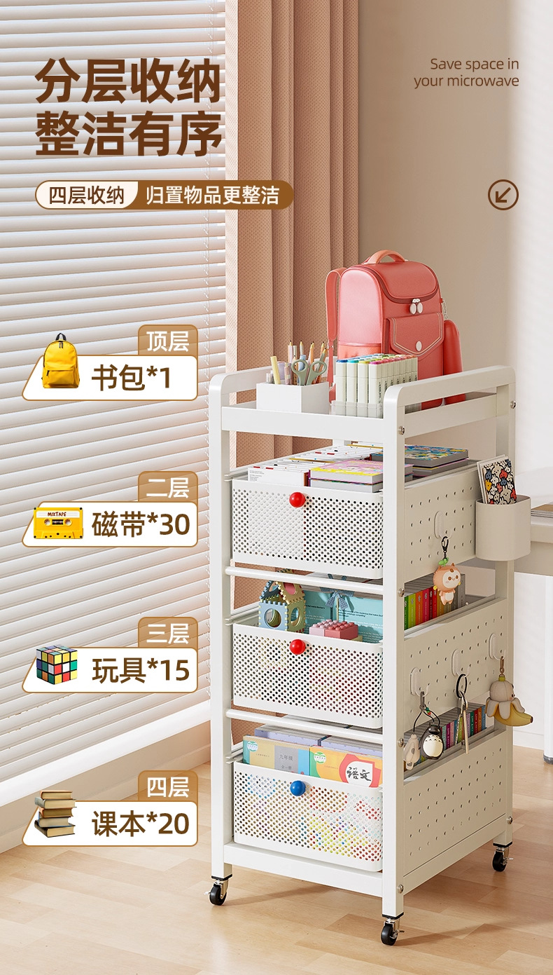 書包置物架家用多層桌下滑輪櫃放書本零食收納架可移動廚房小推車