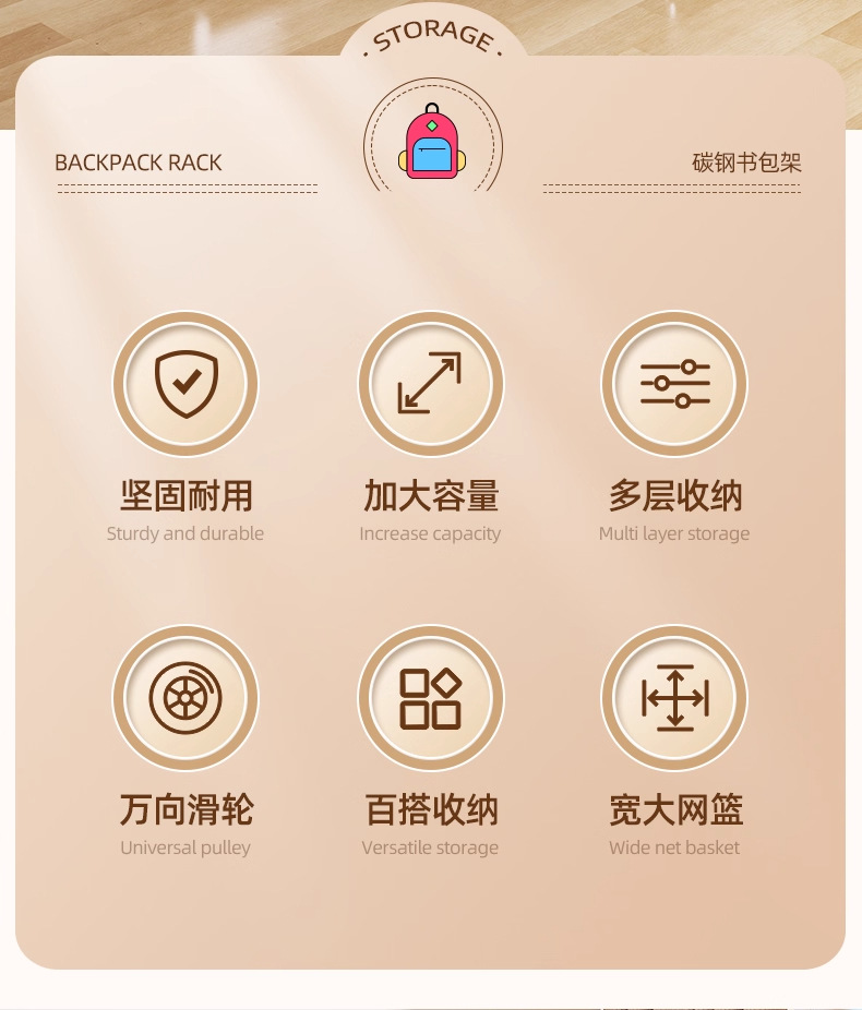 【嬭白色】1層書包架+可移動