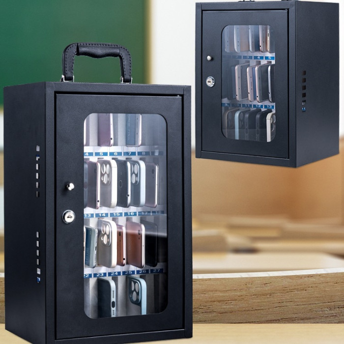 鋼鐵手機保管箱帶鎖透明學生員工存放寄存櫃餐廳部隊會議收納盒子