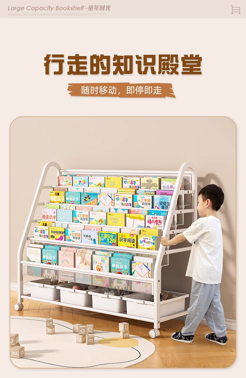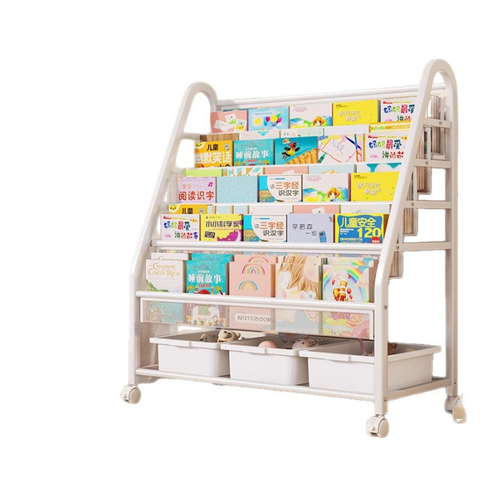 兒童書架繪本架可移動玩具收納架寶寶書櫃置物架子落地多層閲讀架