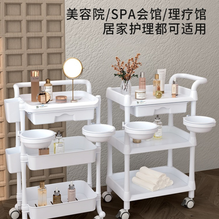 三層ABS美容車+洗臉盆+汙物桶 (默認髮白色)