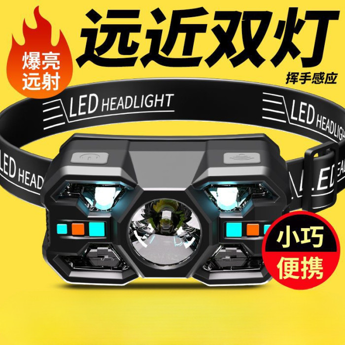 感應頭燈夜釣魚專用超輕頭戴式超長續航強光充電超亮戶外輕巧