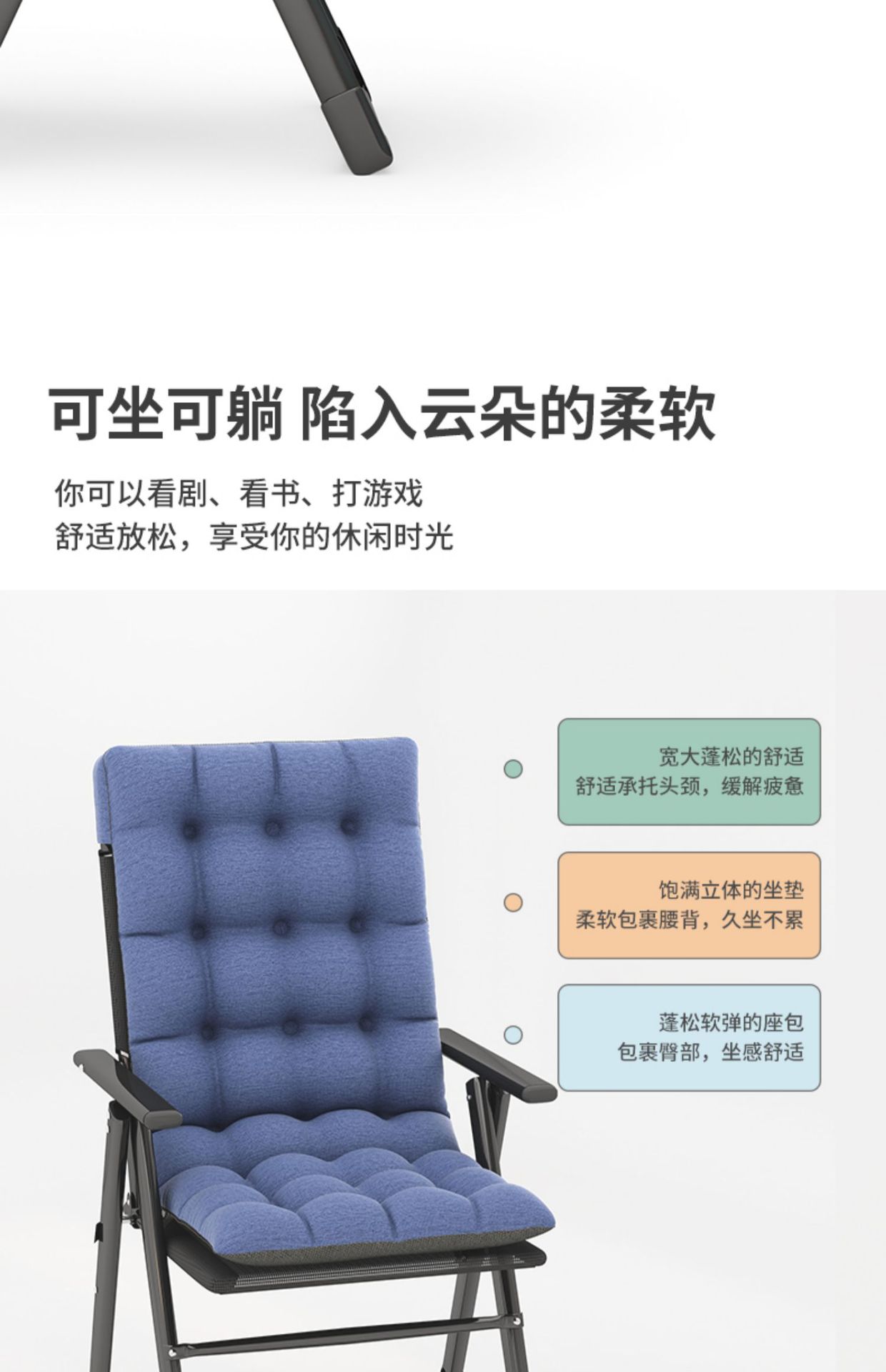 【9擋調節+椅墊可拆卸】粗方琯+藍色棉麻墊+靠枕