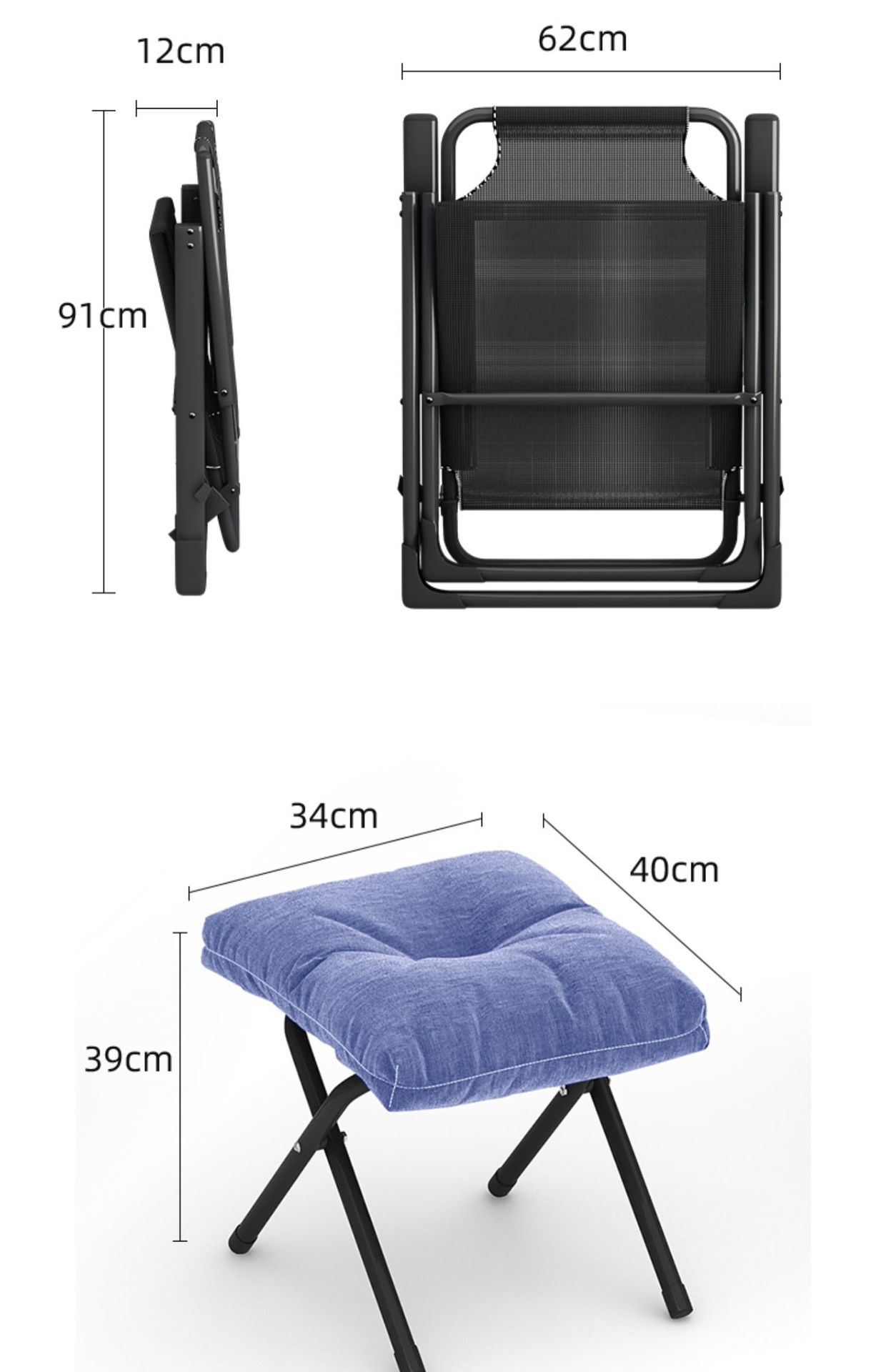 【9擋調節+椅墊可拆卸】粗方琯+藍色棉麻墊+靠枕+腳蹬