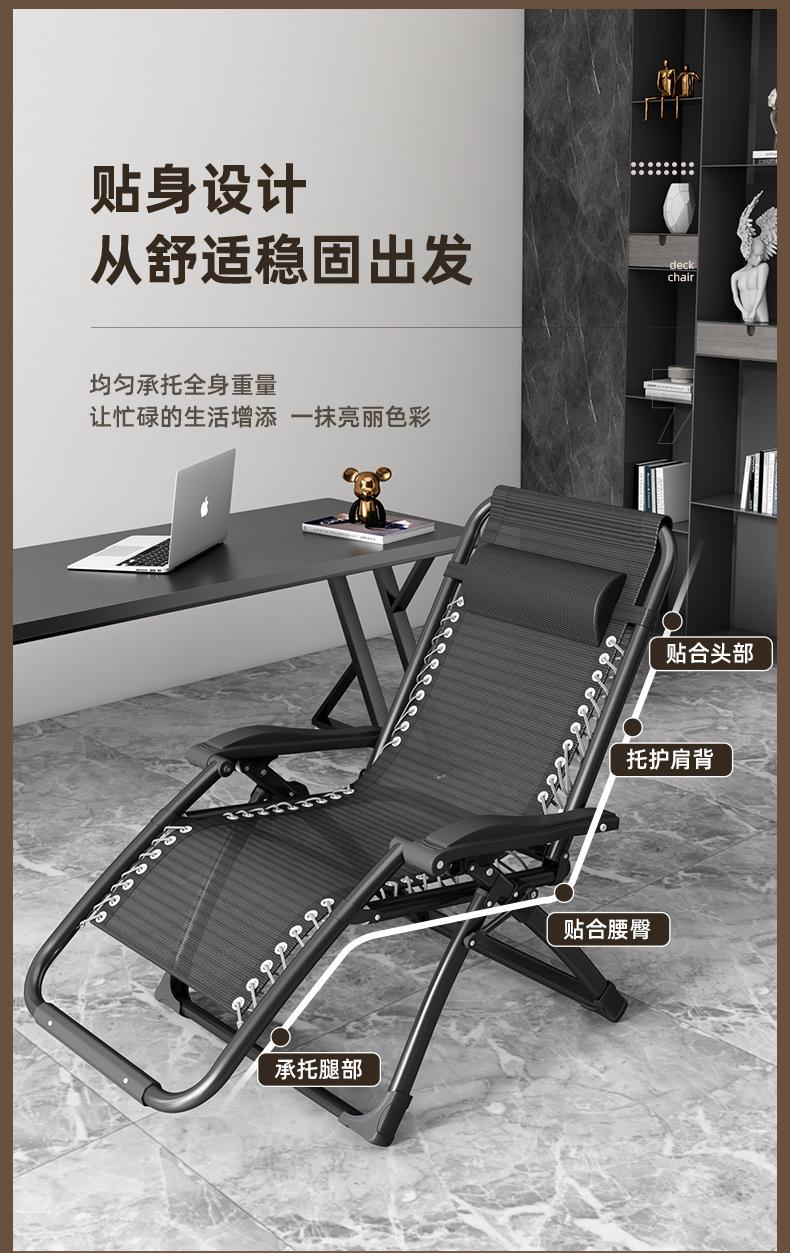 黑雙方琯躺椅+網布特斯林+透氣腰靠