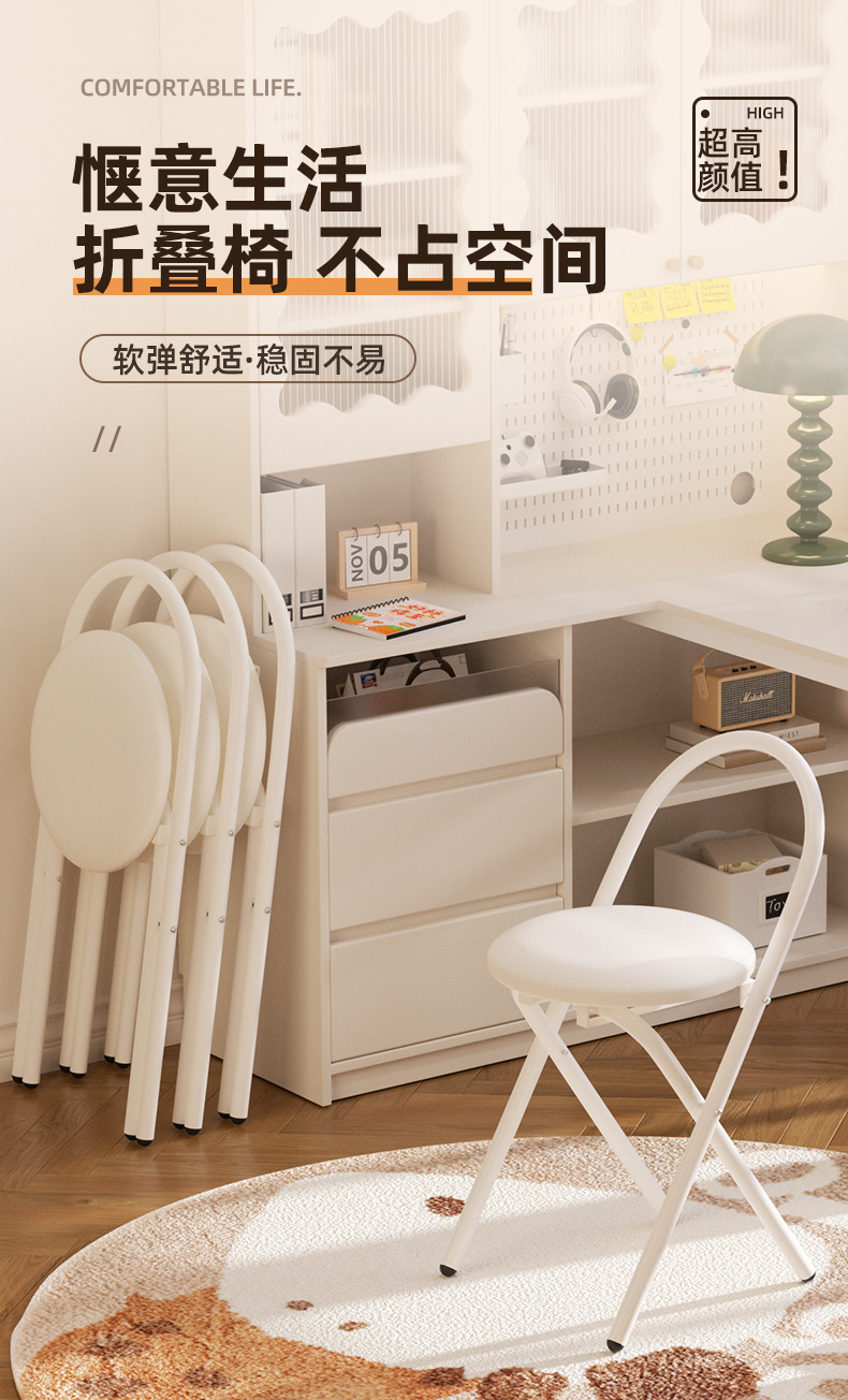 可折曡凳家用女生臥室舒適久坐出租屋用凳子靠背宿舍辦公室電腦椅