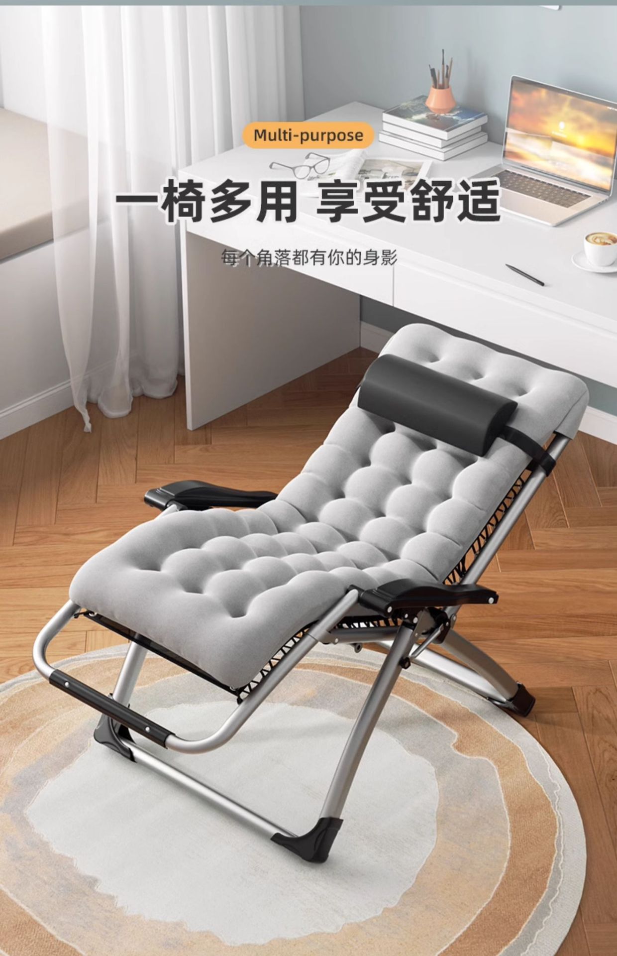 躺椅折曡金屬兩用辦公室午睡床家用陽台休閒懶人可坐可躺睡靠座椅