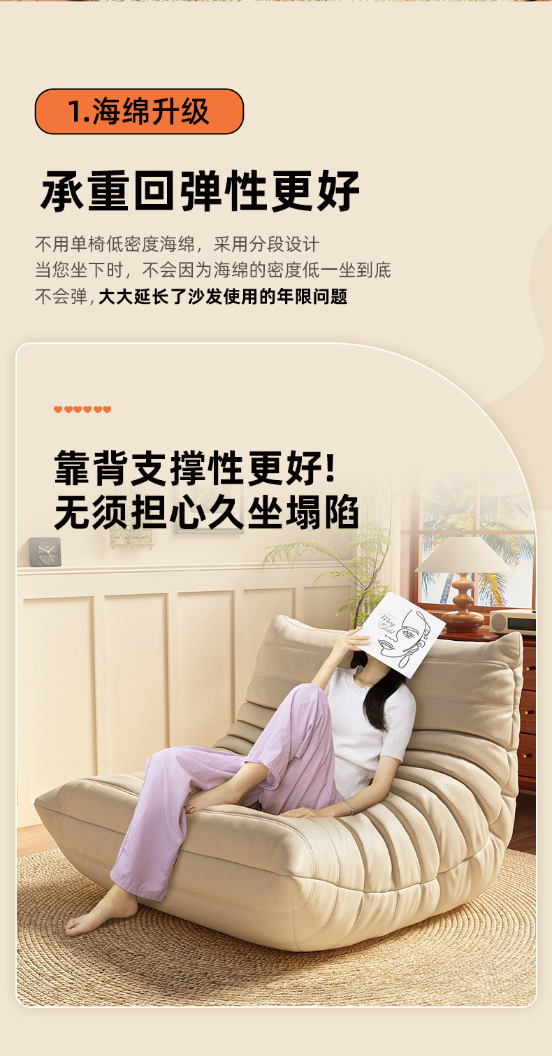 毛毛蟲懶人沙發客廳可睡可躺陽台臥室單人沙發北歐網紅休閒椅