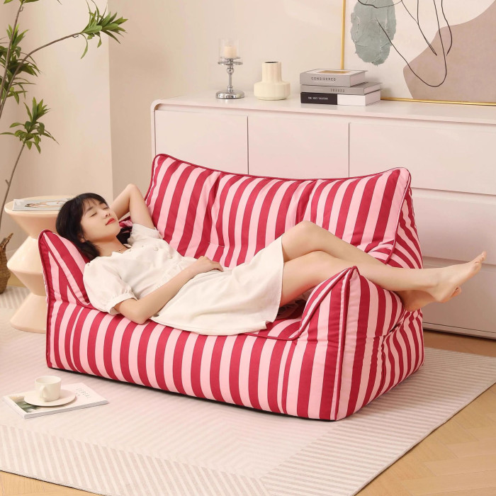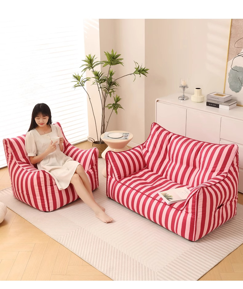 懶人沙發可睡可躺客廳休閒榻榻米臥室陽台靠背椅網紅條紋雙人座椅