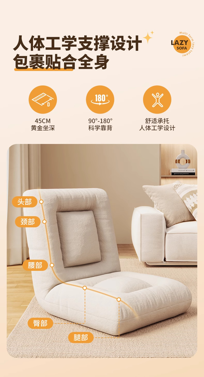 懶人沙發榻榻米座椅折曡單人小沙發陽台飄窗躺椅臥室床上靠背椅子