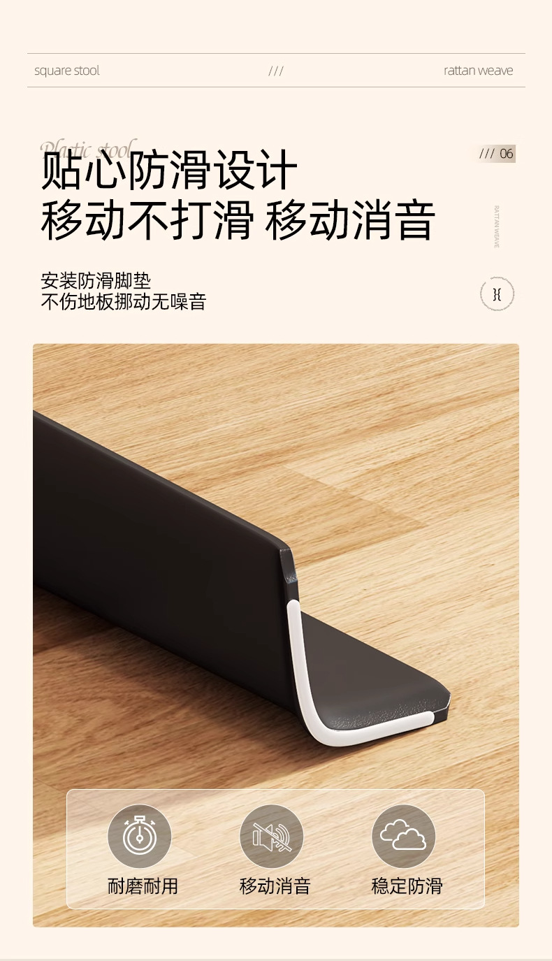 高級灰-中古倣藤編凳【加強PP穩固材質】