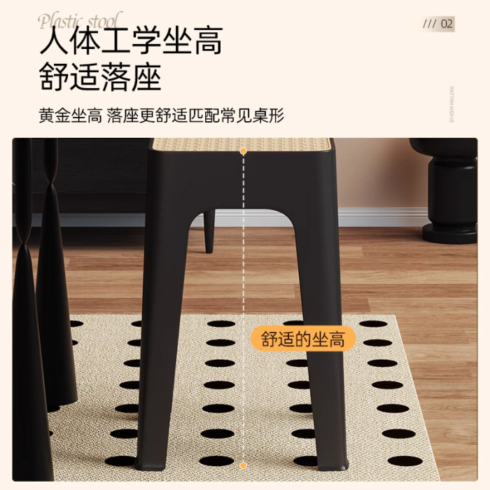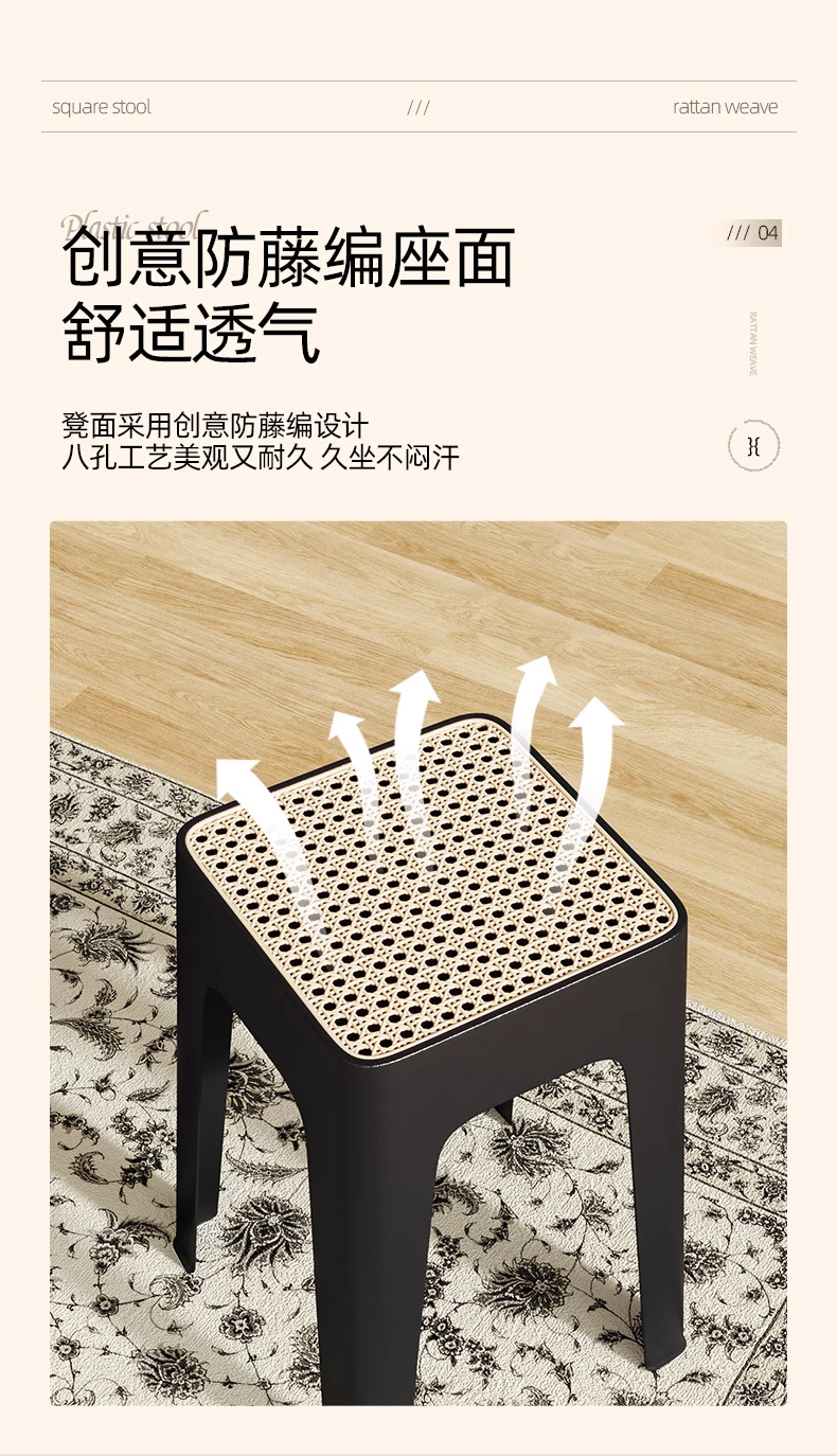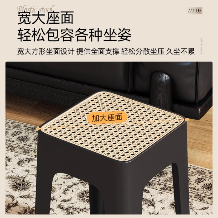 中古仿藤編方凳可曡放現代簡約客廳備用餐凳塑膠凳子家用結實耐用