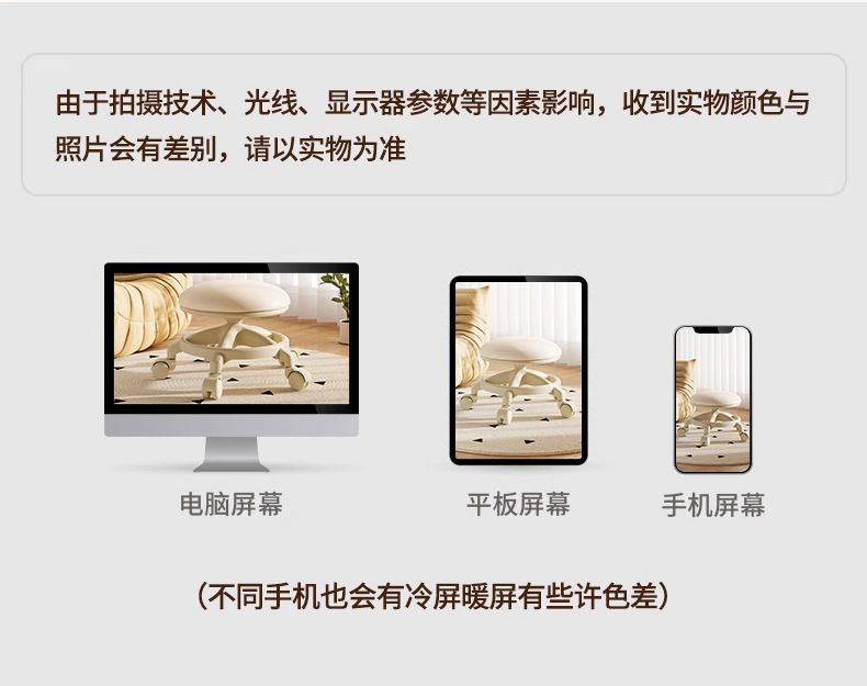卡其-蘑菇凳【加固金屬框+穩固五爪】移動自如