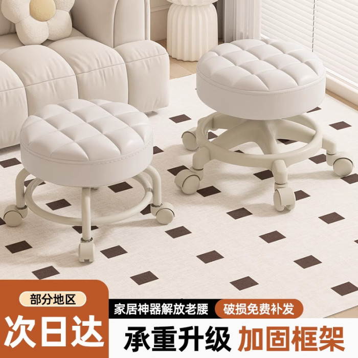 萬向輪小凳子靜音滑輪矮凳成人加厚軟坐圓凳換鞋可移動兒童學步凳