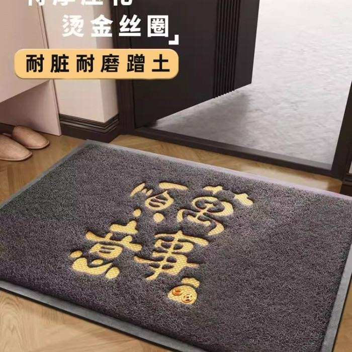 財富滾滾來灰色貼皮壓花絲圈地墊